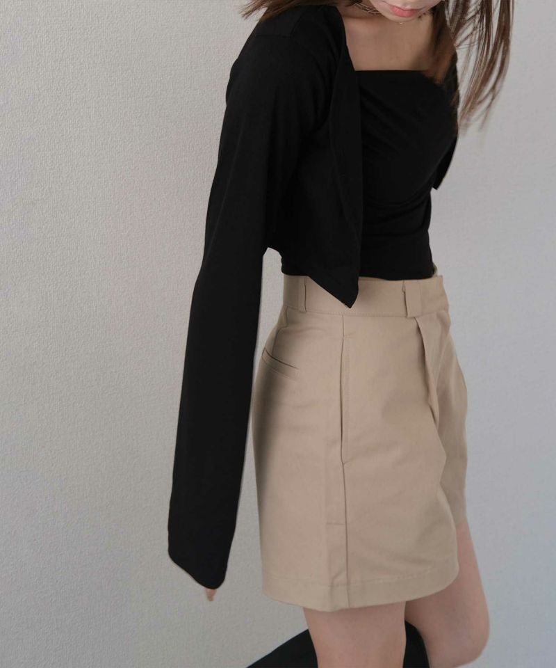 ハリ感があるので、シルエットをキープしてくれてラインが綺麗!長さも短すぎず穿きやすいです!