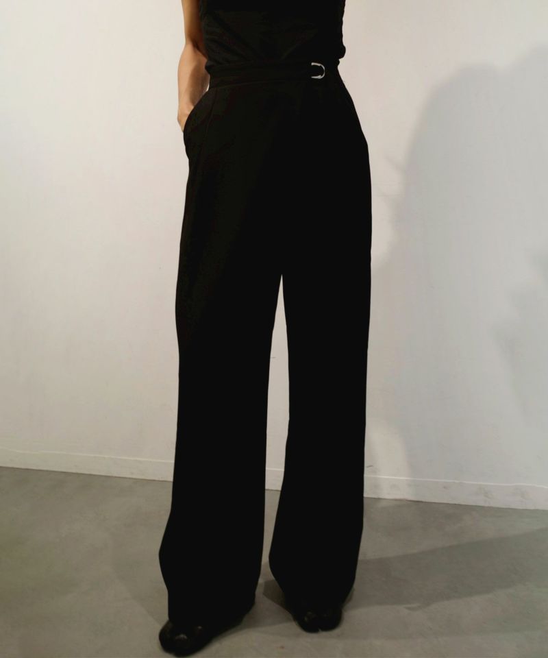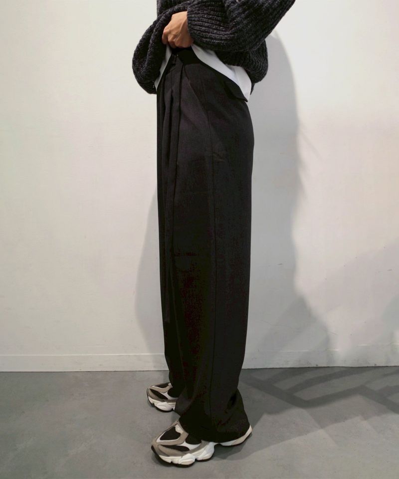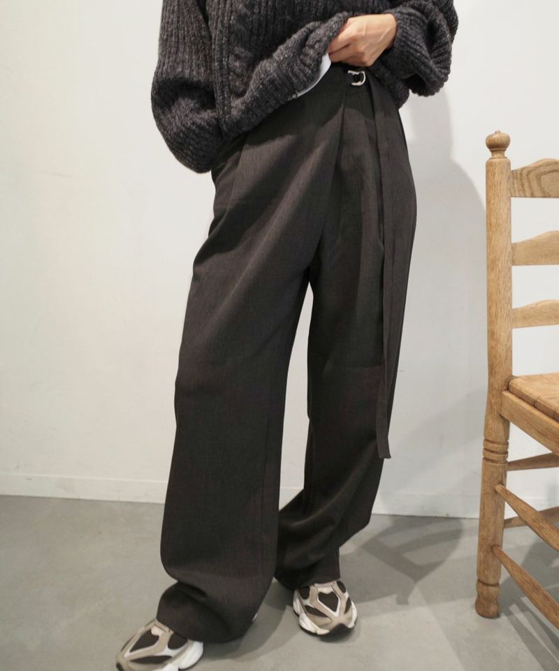 フロントにラップ風デザインを取り入れたワイドシルエットパンツ。