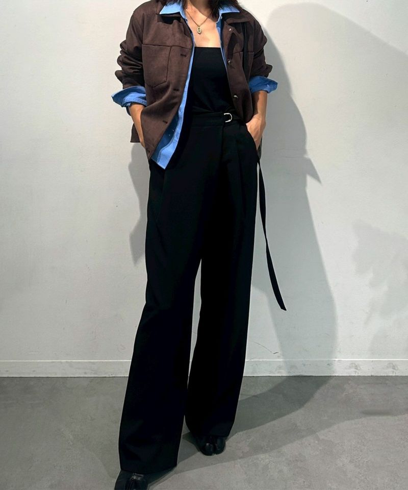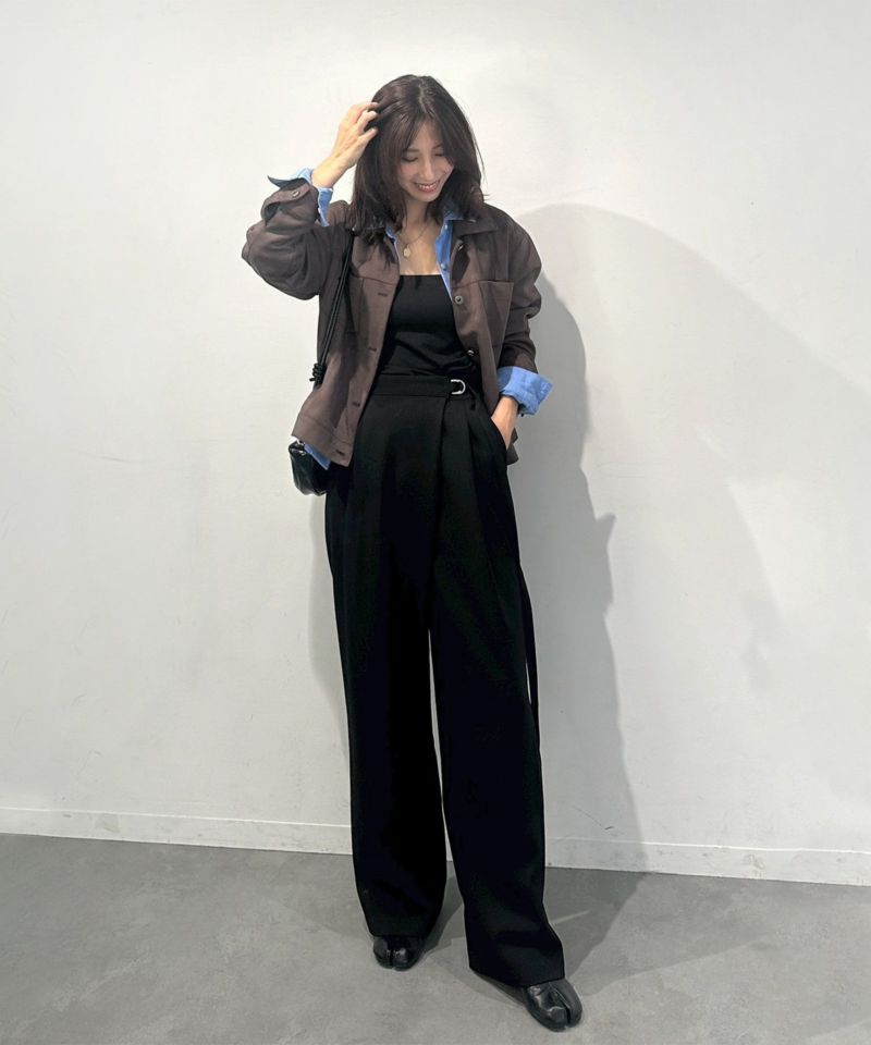 ウエスト部分のDカンベルトがアクセントとなり、モードな雰囲気をプラス。