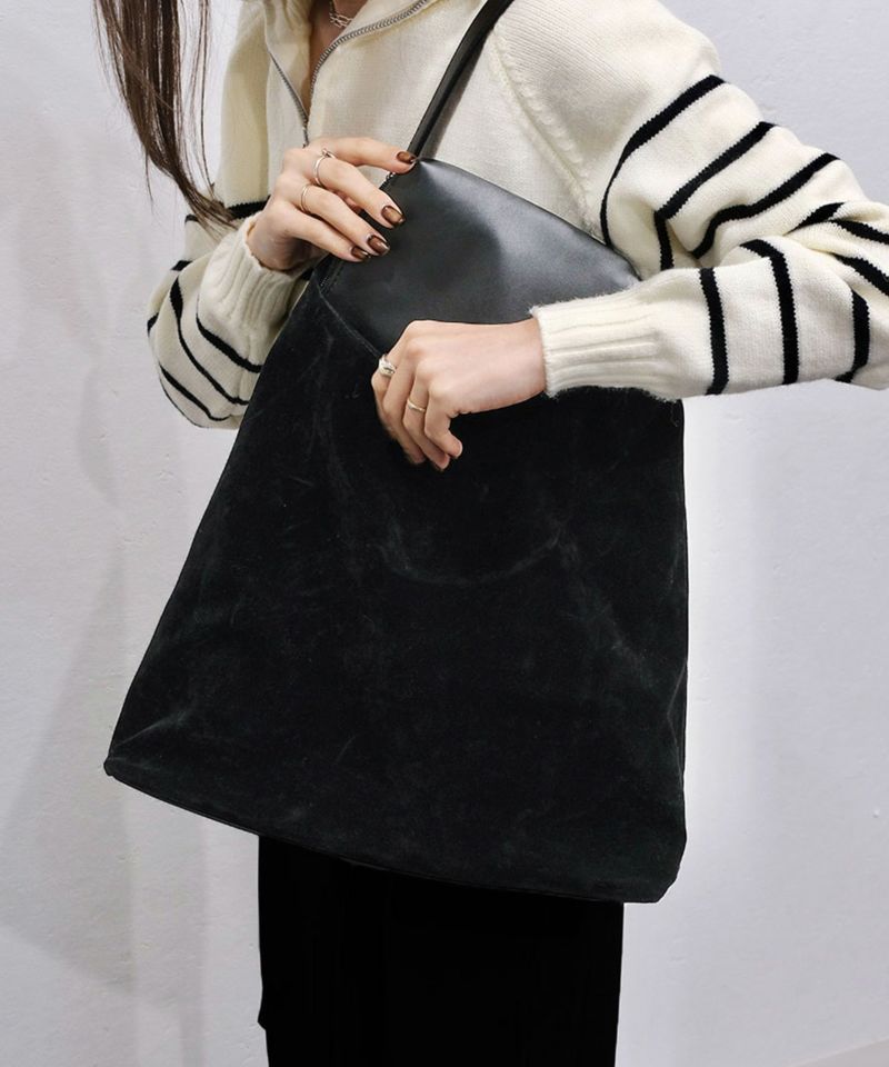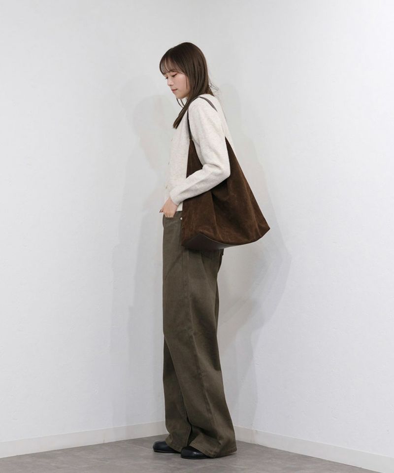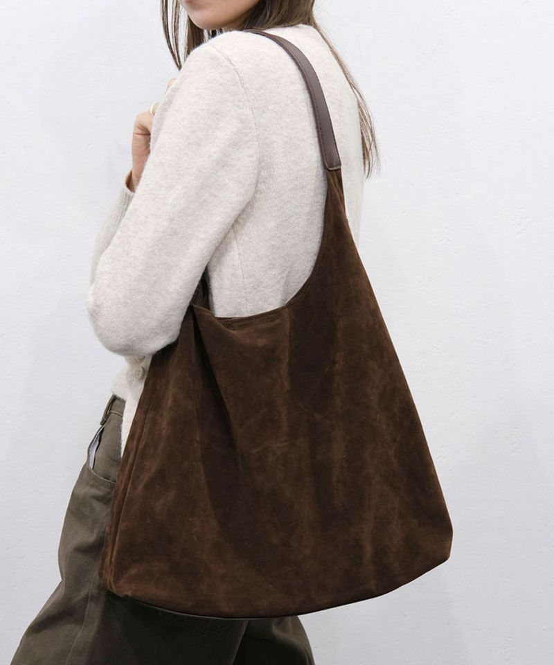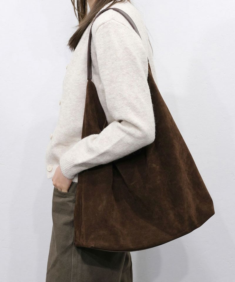 スエード生地が可愛いA4サイズ収納可能バッグ◎ 荷物が多い日でも安心な大容量バッグ。 シンプルなデザインながらトレンドのワンハンドルが可愛いアイテム。