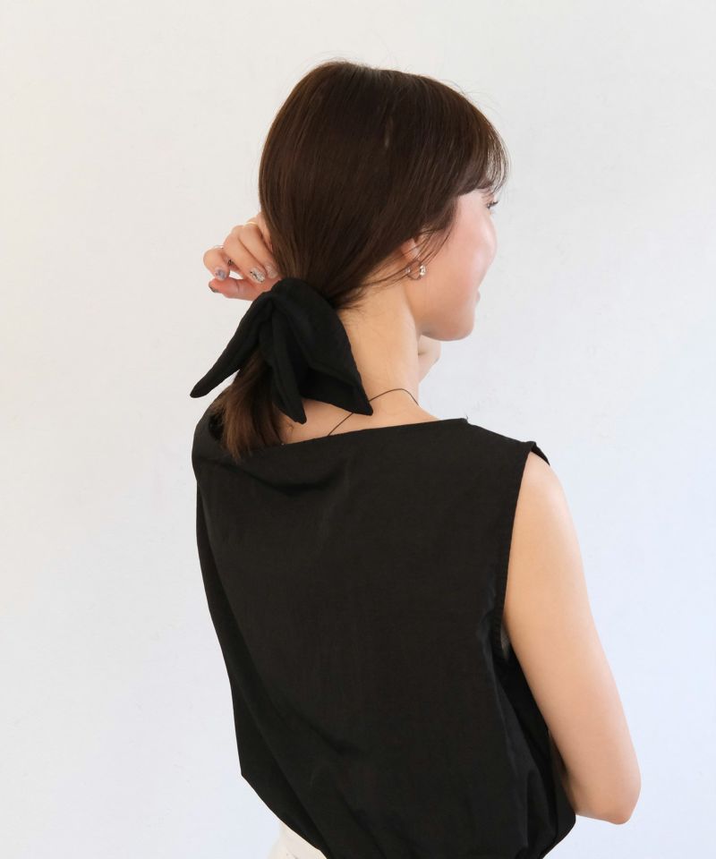 ボリューム感のあるリボン風シュシュ。 シンプルながらも存在感があり、 さっと髪をまとめるだけでこなれた印象に。