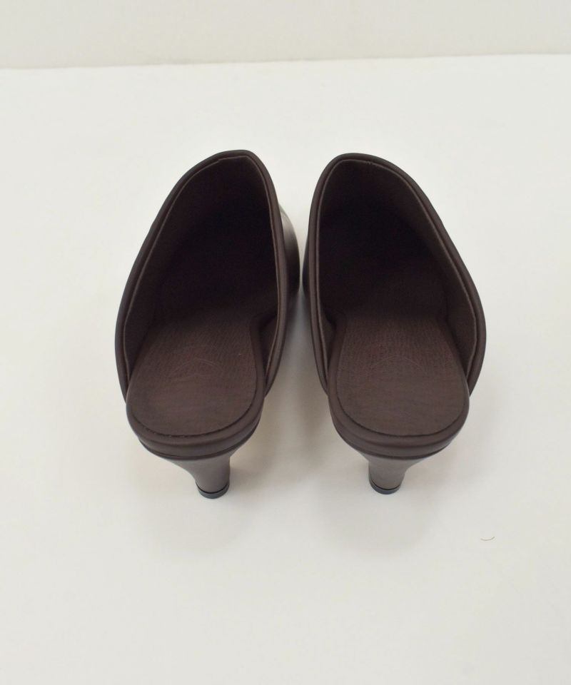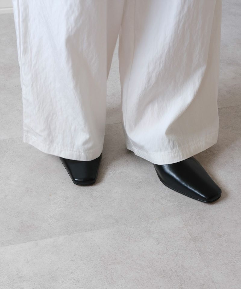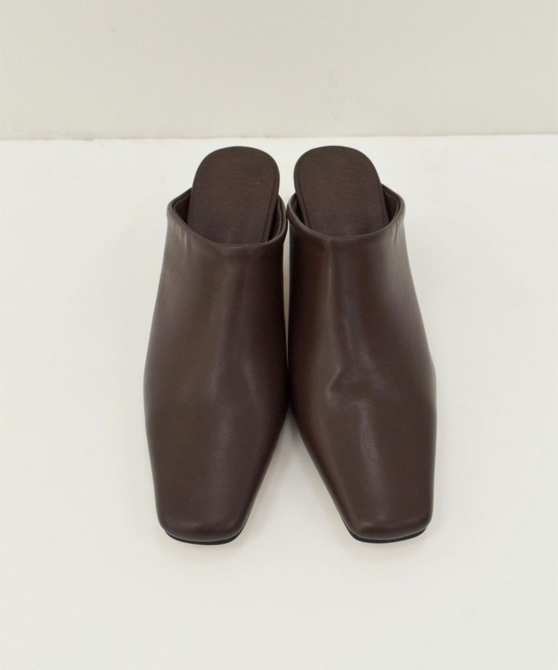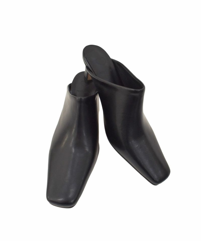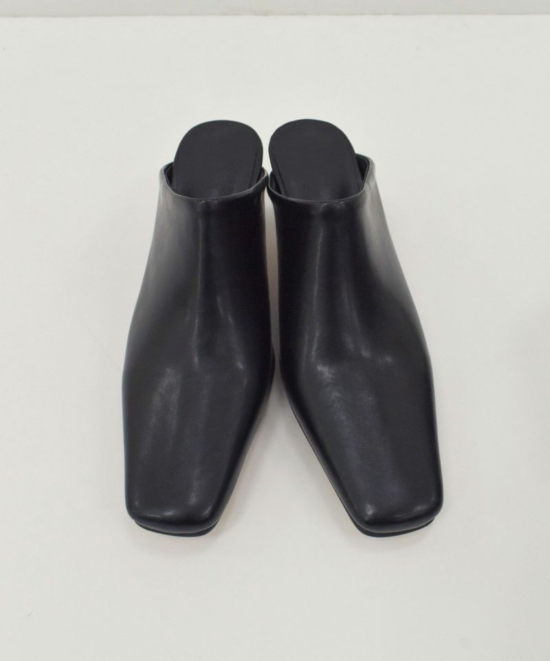 シャープなラインが際立つスクエアトゥデザインのミュール。