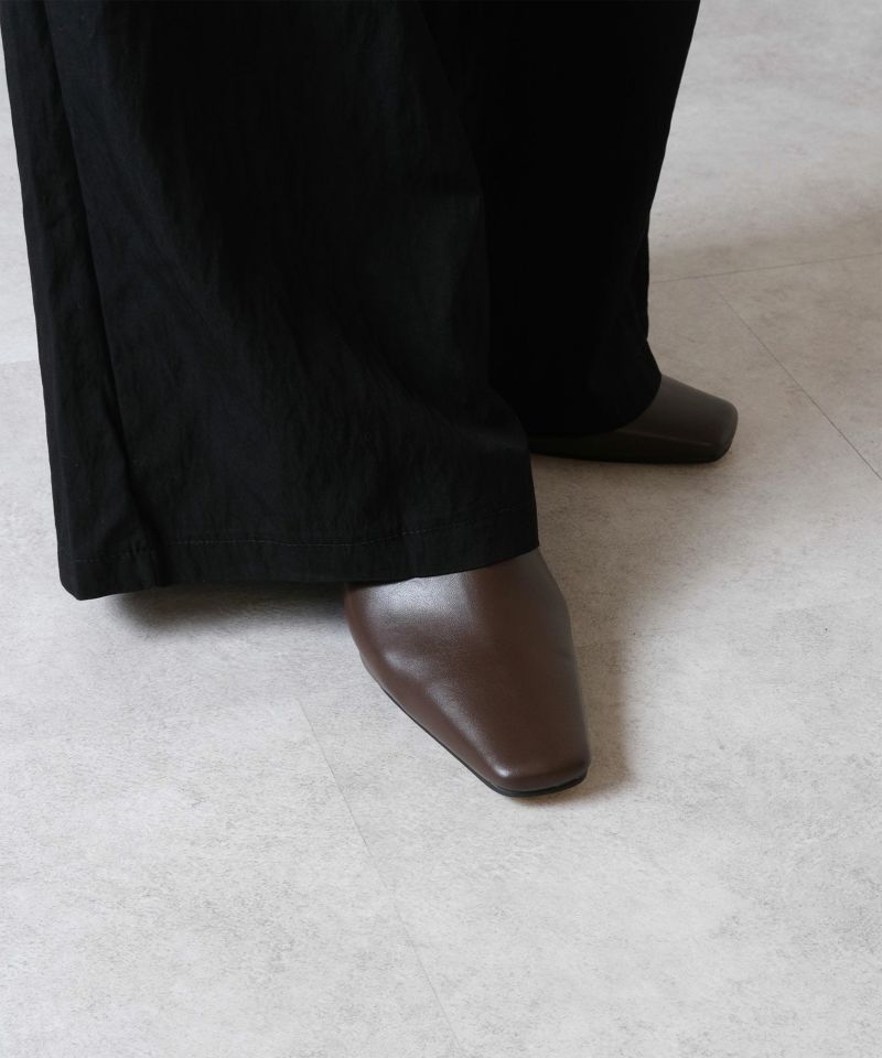 ヒールレスのシルエットで、脱ぎ穿きのしやすさと洗練された印象を両立します。