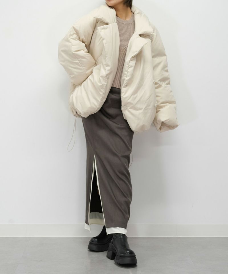 形はミドル丈の緩やかなコクーンシルエットをベースとして