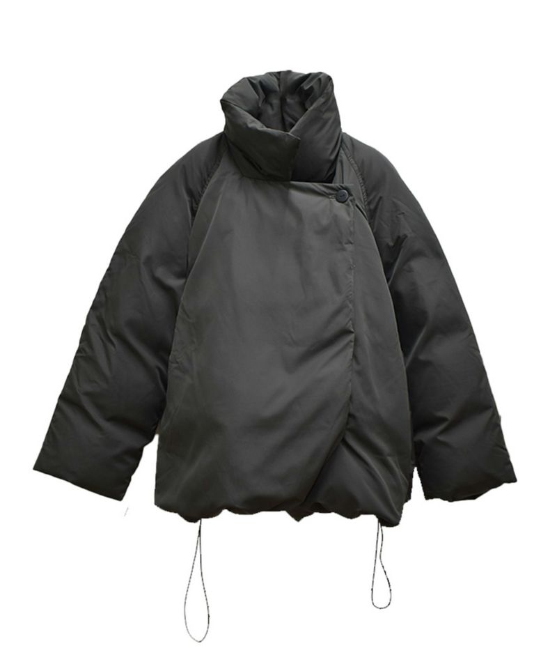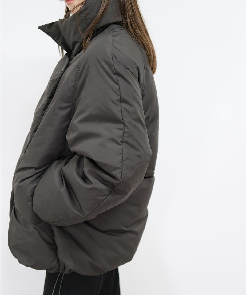 前を閉じて首元まで暖かなスタンドカラーでも、