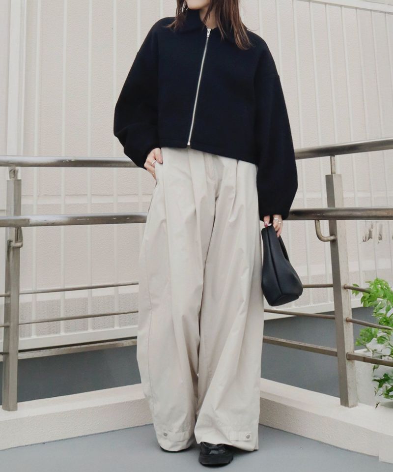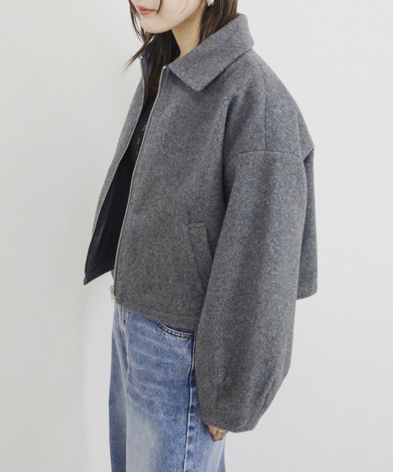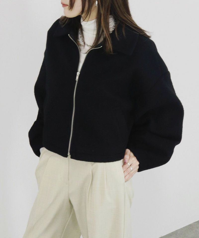 シンプルで使いやすいカジュアルさと、 トレンドライクなクロップド丈デザインが魅力的な1枚。 軽やかで柔らかい生地と、たぽんとしたボリューム袖が シンプルで着まわしやすい万能アウター。
