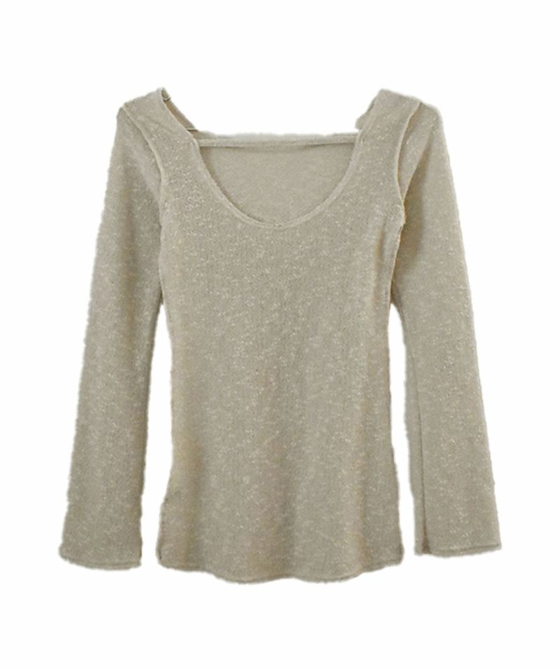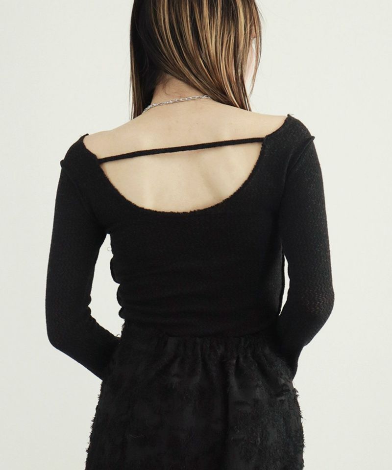 ざっくりと背中が空いたデザインがヘルシーな抜け感の大人ニット。 シアー感のある薄手のニットながらも 透けすぎずほんのりシアーが上品な抜け感を演出。