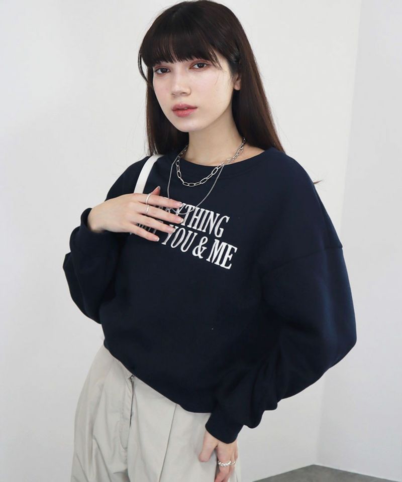 フロントの英字刺繍がポイントの1枚。 シンプルで誰にでも似合うベーシックデザイン。 長すぎないミドル丈なので、ボトムスも選びません◎