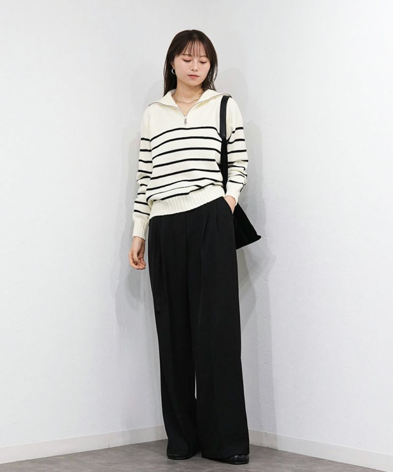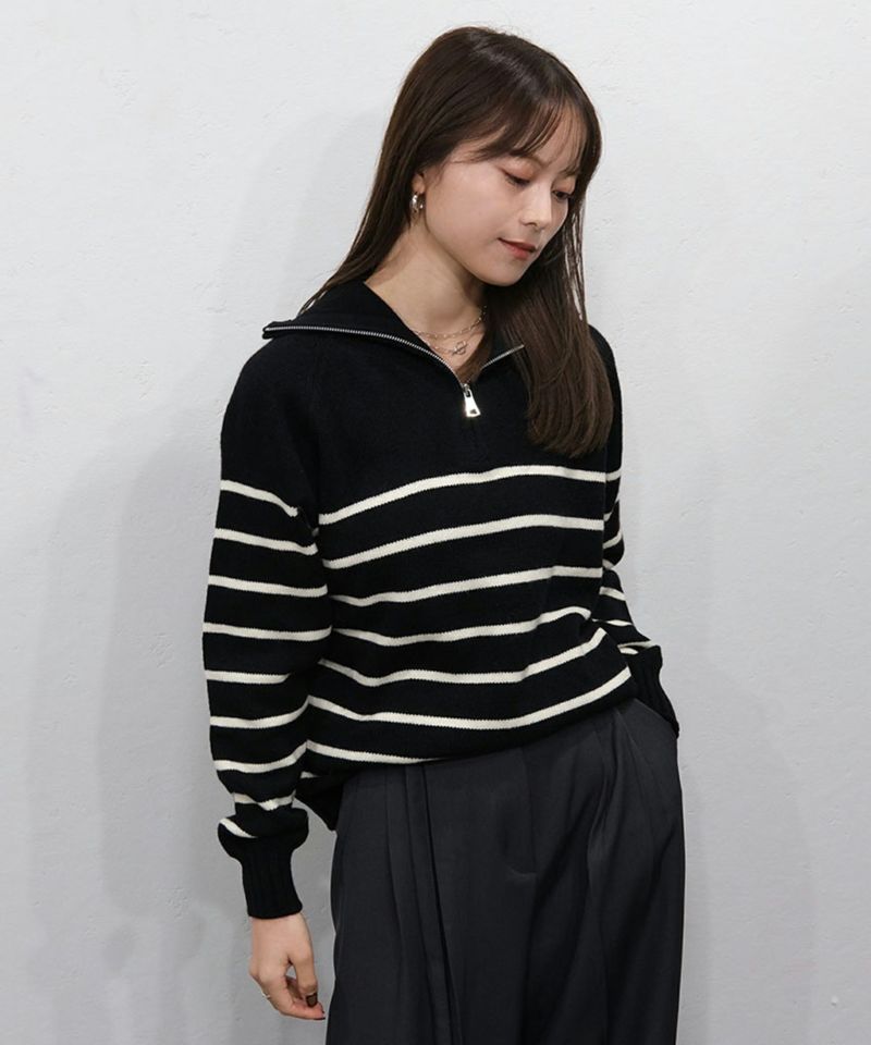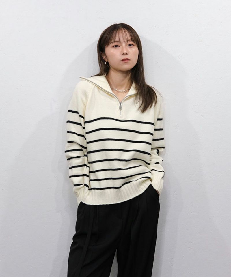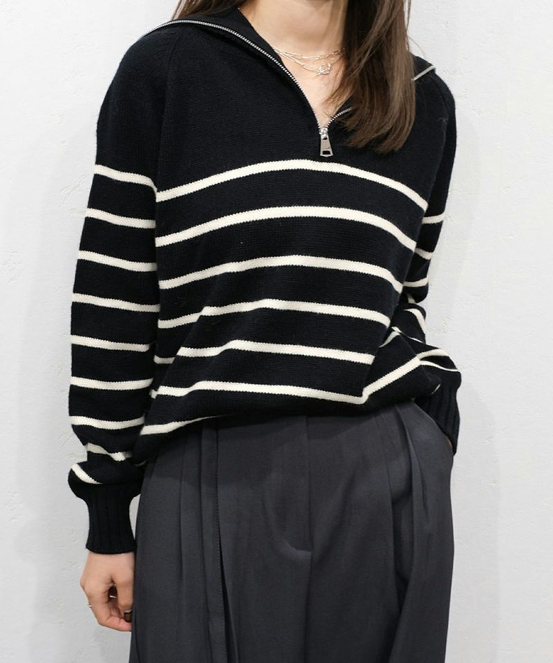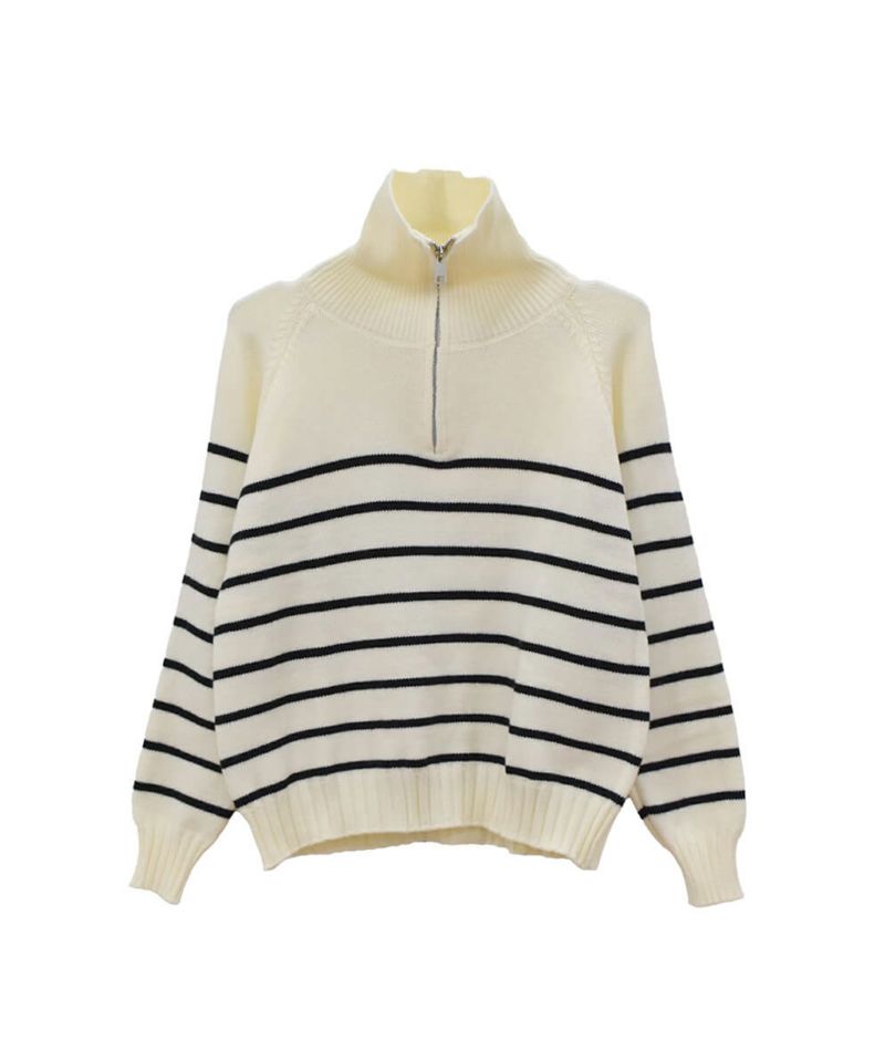 定番のハーフジップのボーダーニット。