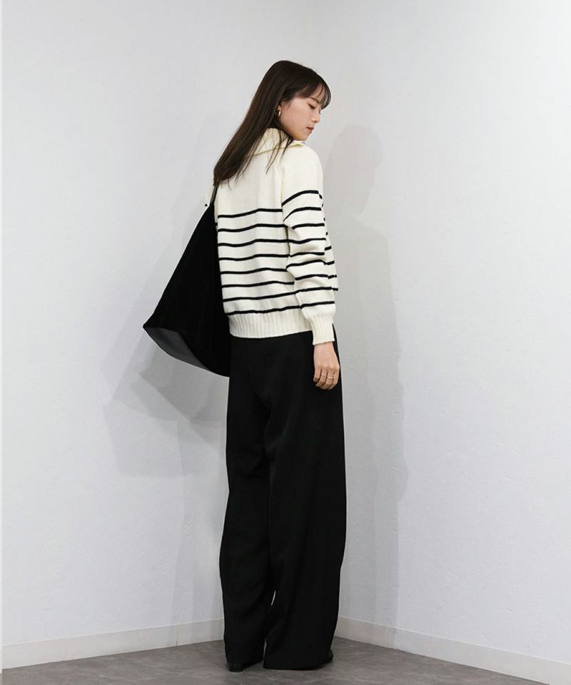 ネックを倒して襟付きニットとしても着こなせるアイテム◎