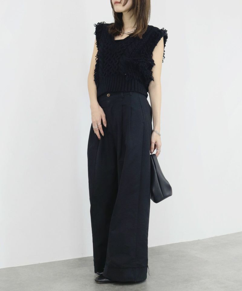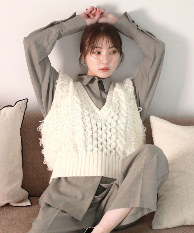 シンプルで使いやすいシルエットに 存在感のあるループヤーンが織り込まれたニット生地の 絶妙な組合わせが目を惹くアイテム。 ショート丈仕様なので足を長く見せてくれる スタイルアップ見え効果にも期待できます◎