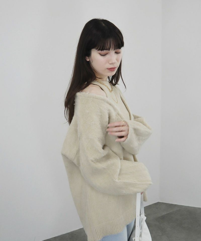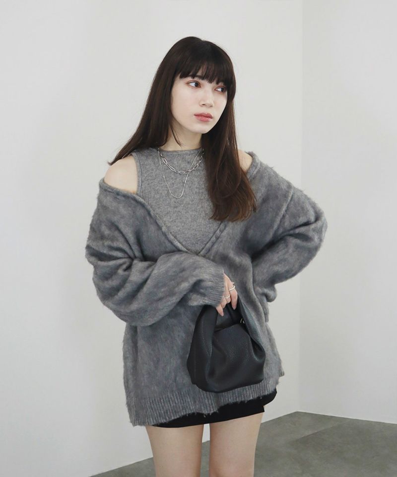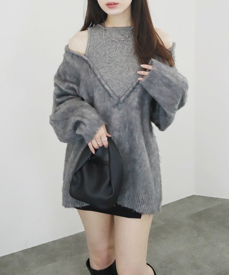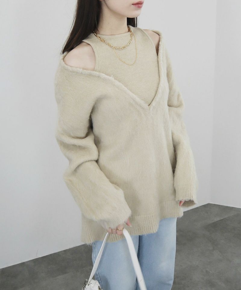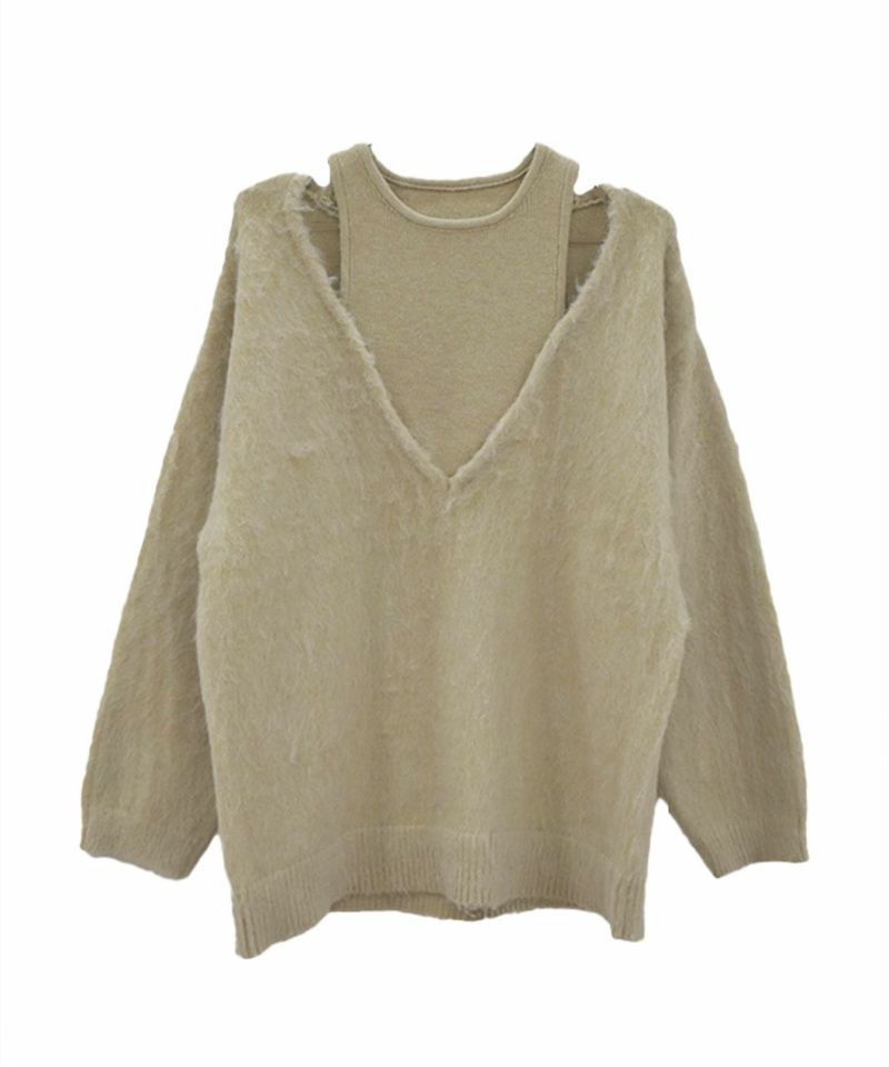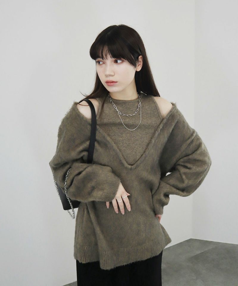 アメスリライクなニットと毛足の長い オーバーニットがドッキングされたニットは 一枚でオシャレなレイヤード見えしてくれる嬉しいアイテム。