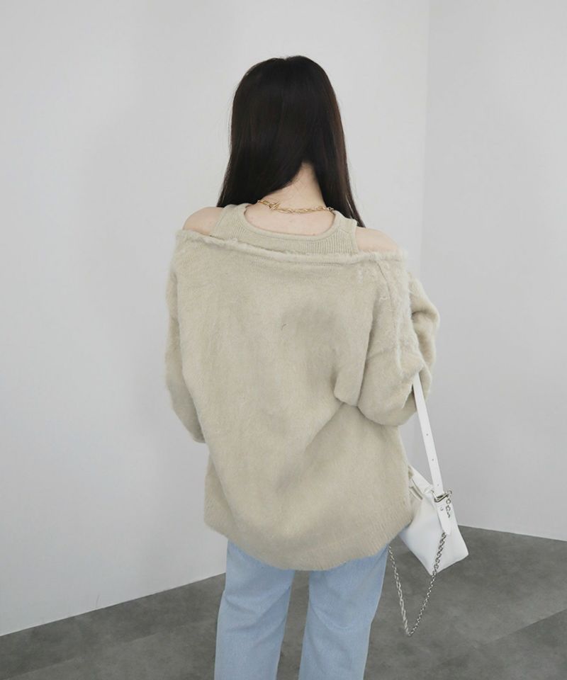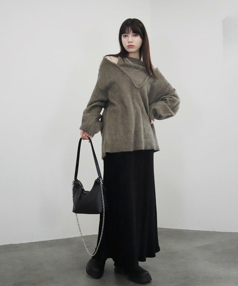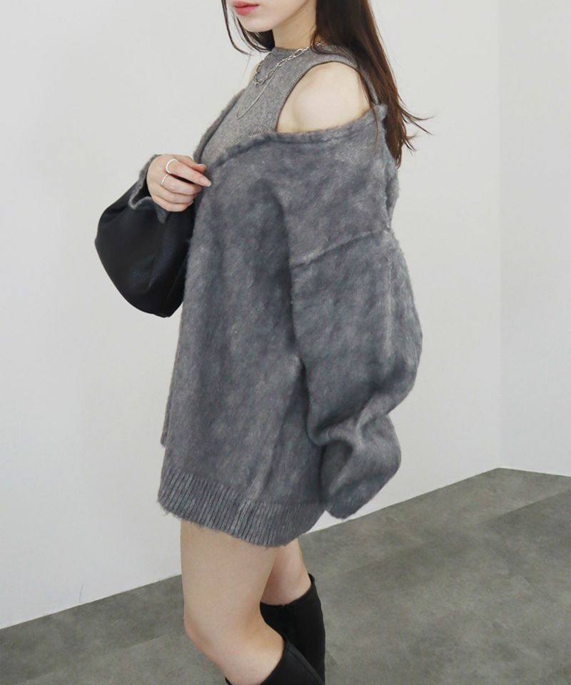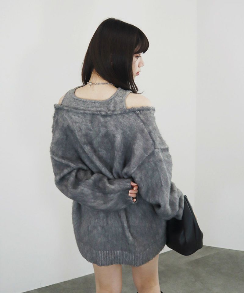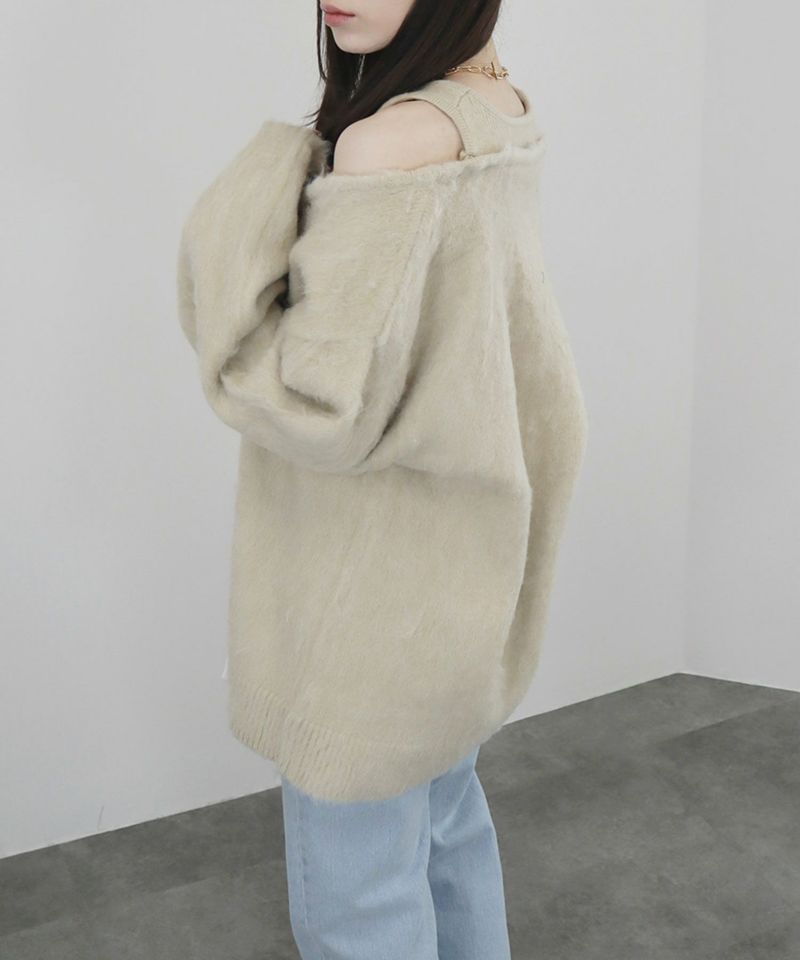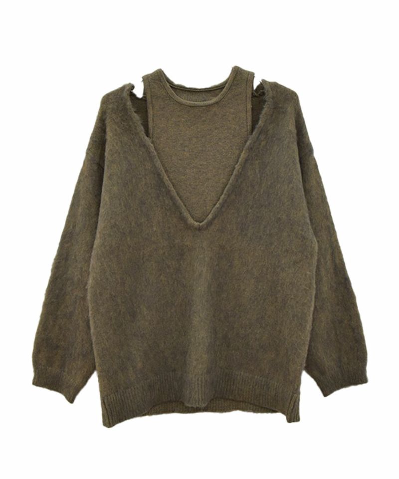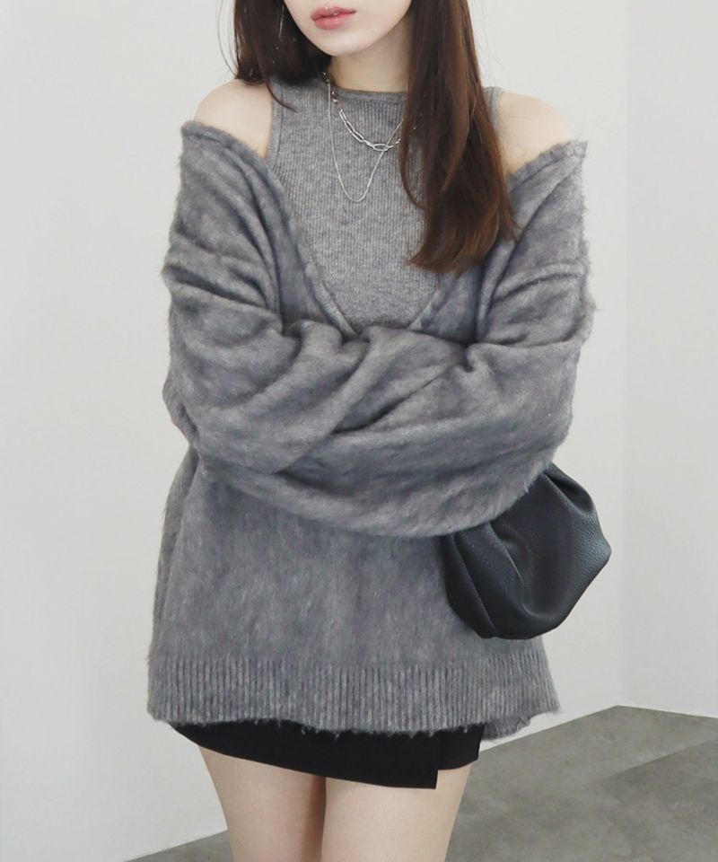 アメスリライクなニットと毛足の長い オーバーニットがドッキングされたニットは 一枚でオシャレなレイヤード見えしてくれる嬉しいアイテム。