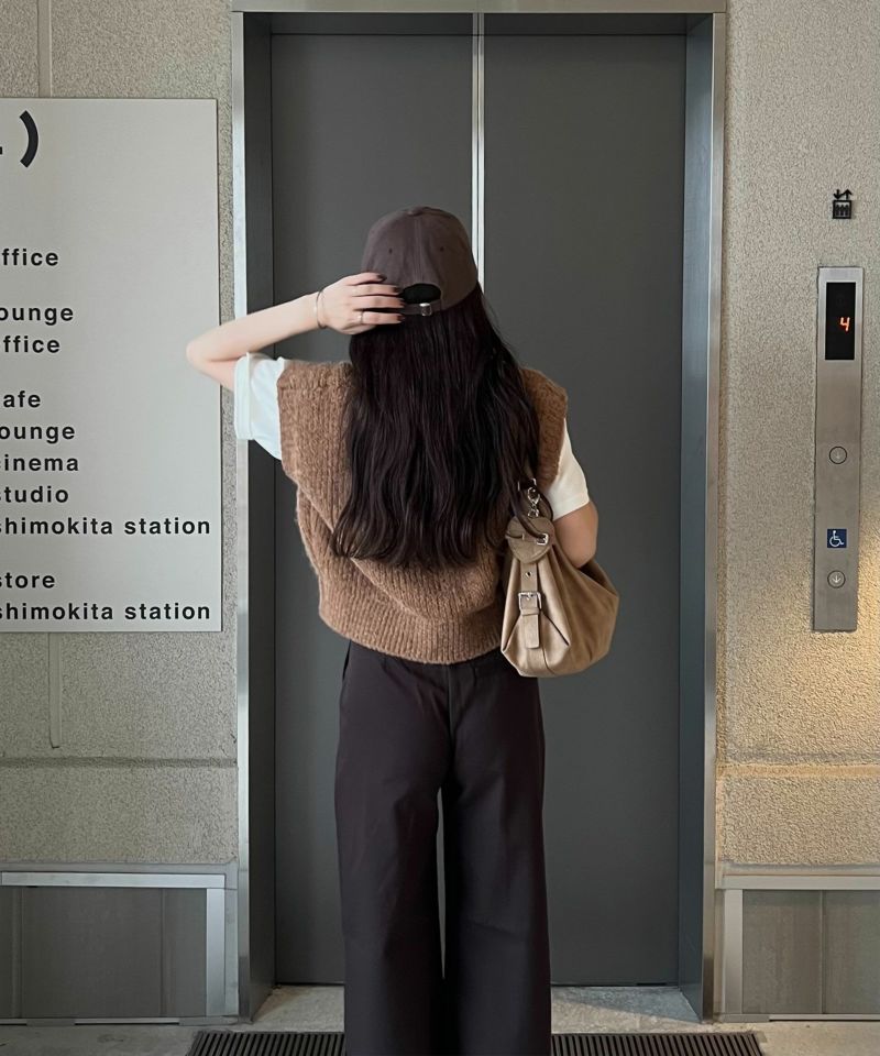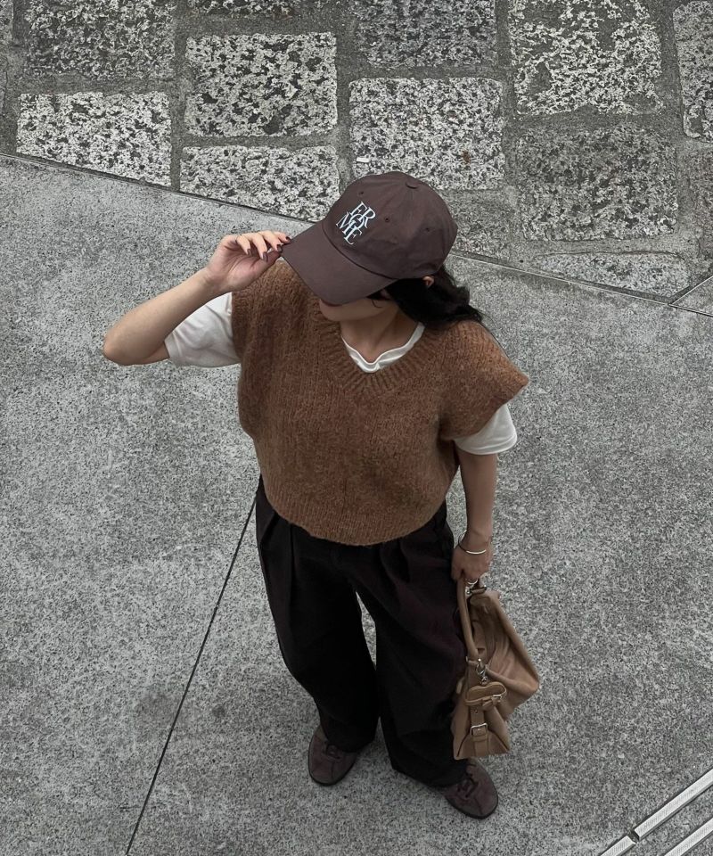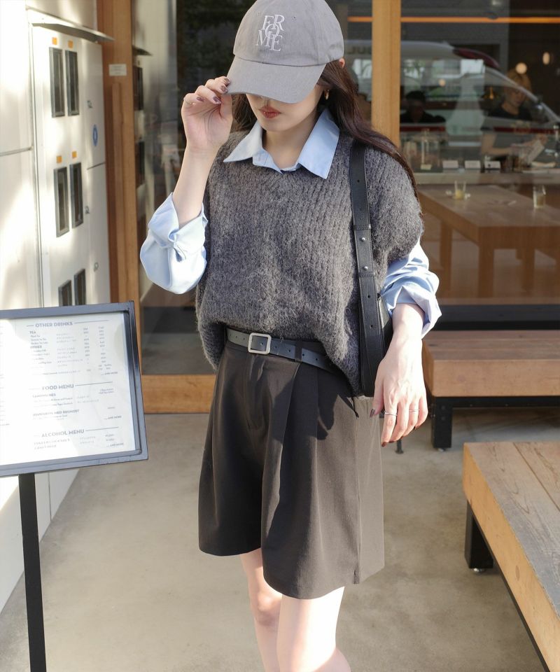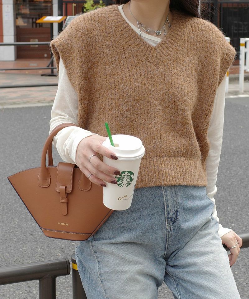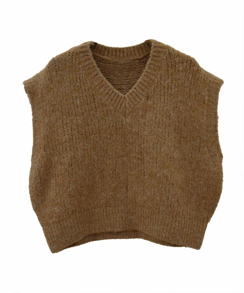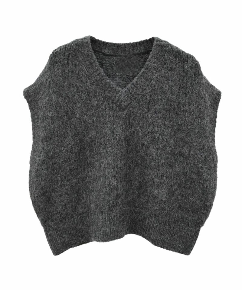 ほどよい厚みともこもことした柔らかな質感がかわいいニットベスト。