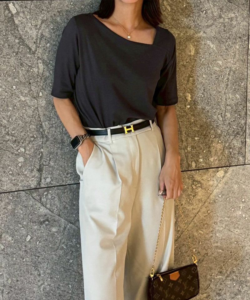 シンプルながらデザイン性があり、ボトムスなんでも相性抜群のアイテムです。<