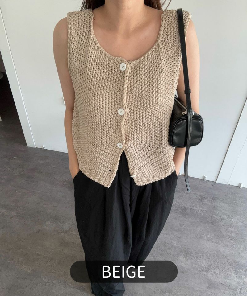 シンプルながらも温かみのあるデザインが魅力のニットベスト。