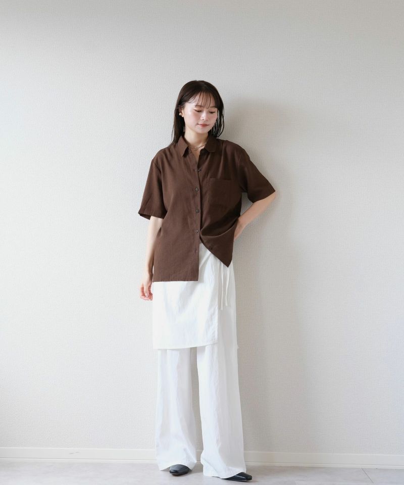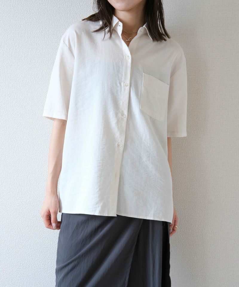 メンズライクなシルエットながらもシンプルなので、着回しのきく半袖シャツです!