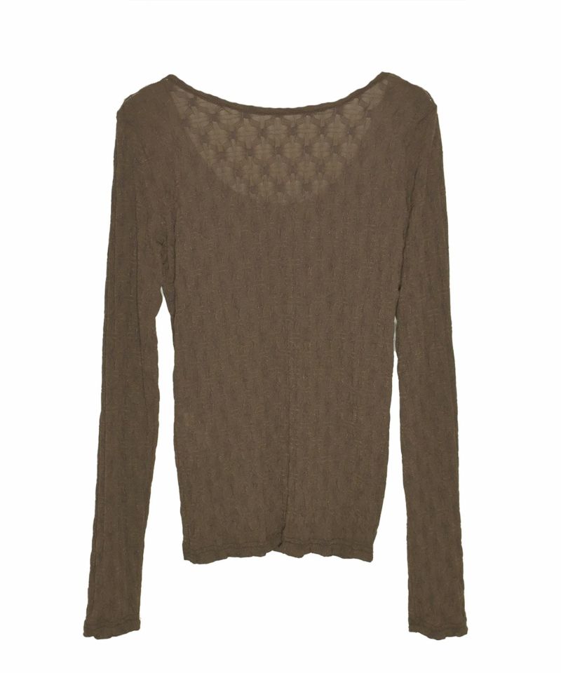 程よい透け感のある編地は、インナーとのレイヤードスタイルを