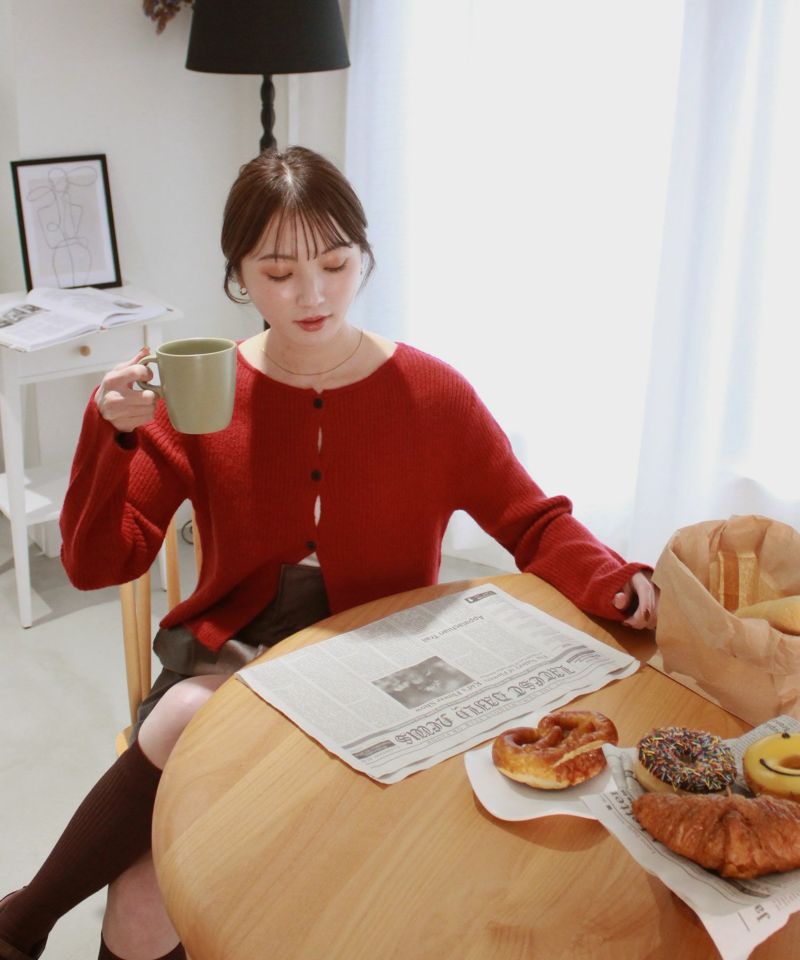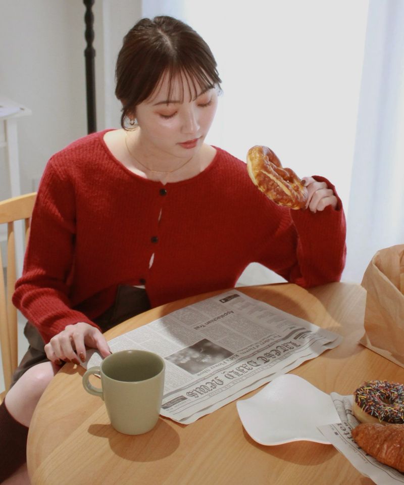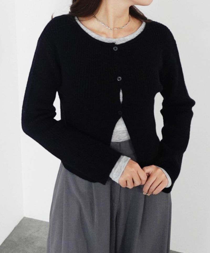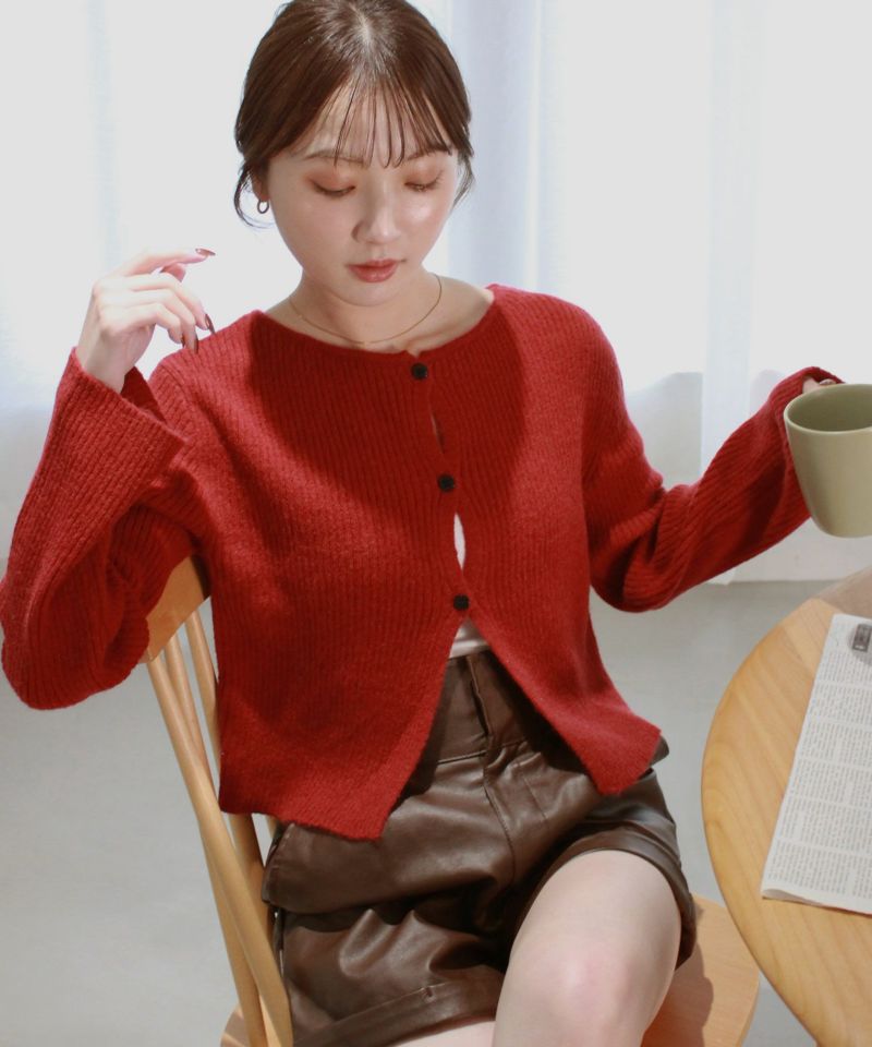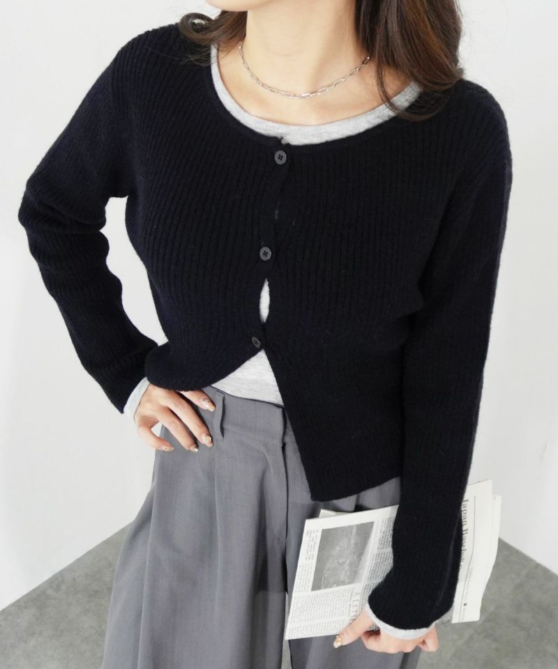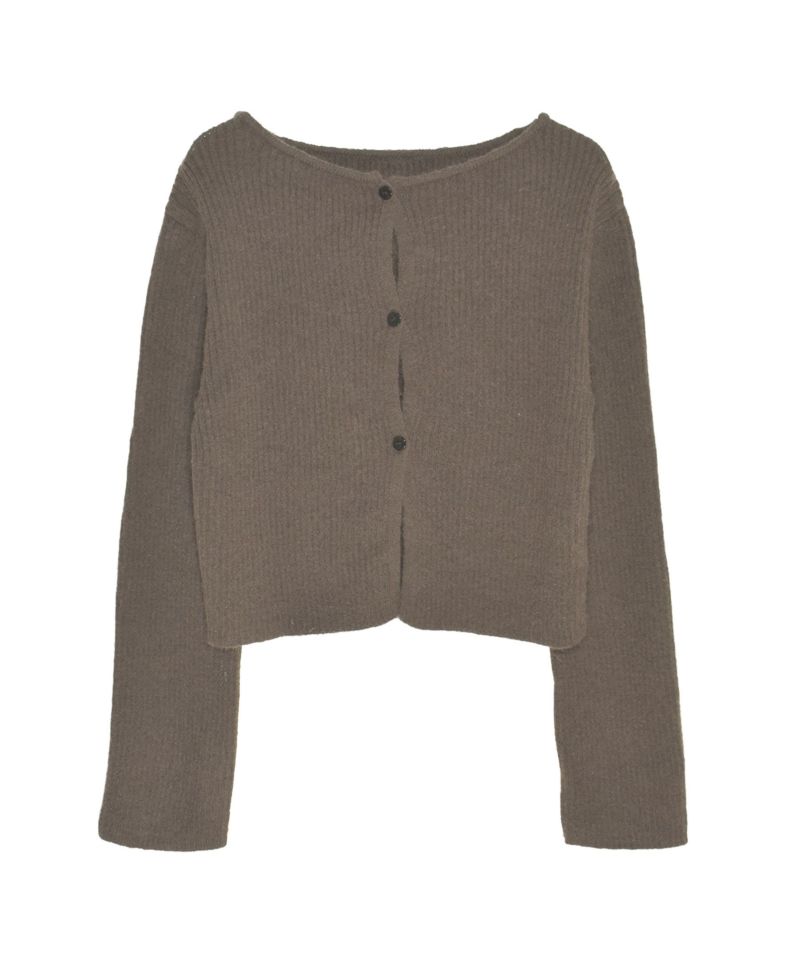 コンパクトなシルエットとショート丈で、トレンド感たっぷりに仕上げたリブカーディガン。 ボートネック風の開きがデコルテをきれいに見せ、女性らしい抜け感を演出します。 シンプルながらも計算された丈感で、スタイルアップ効果も抜群の一枚です