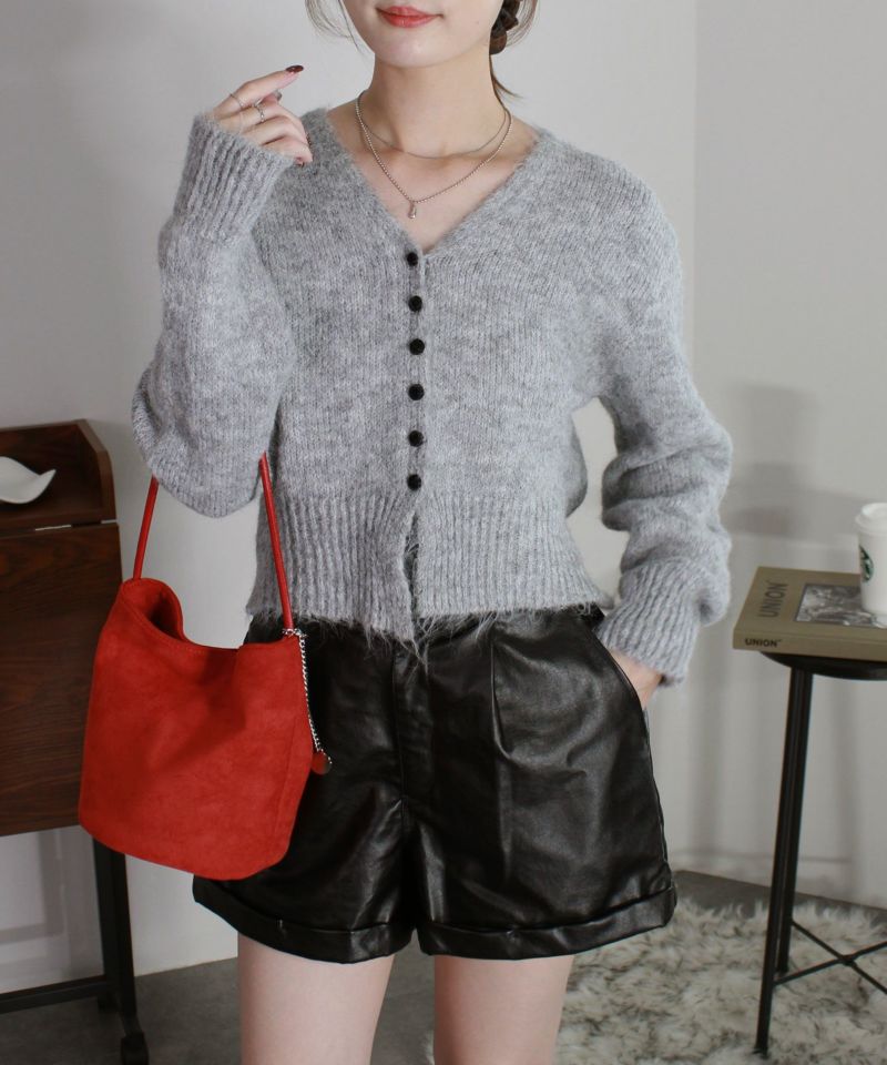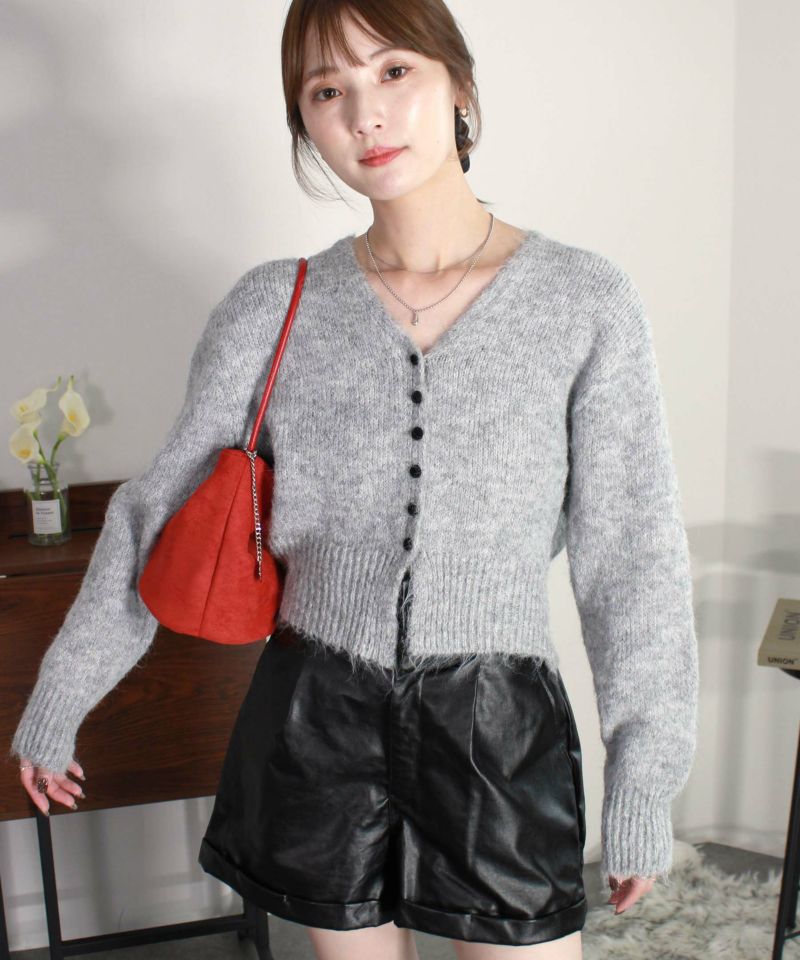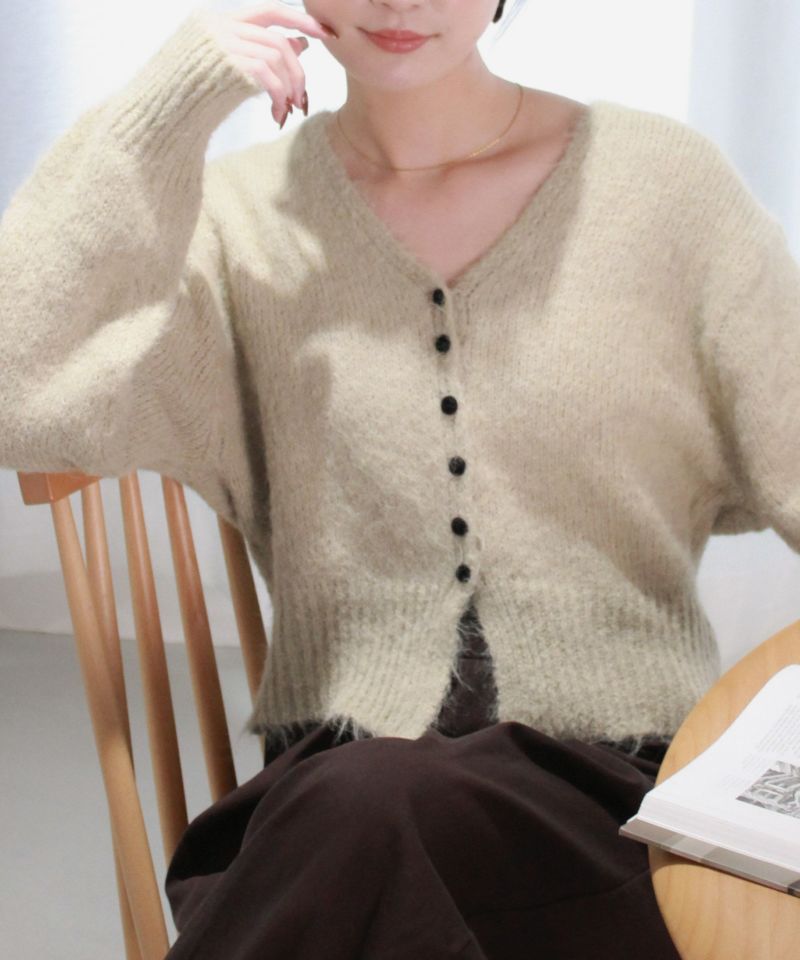 ふんわりとしたシルエットと深めのVネックが女性らしい印象のショートカーディガン。 コンパクトな丈感で、自然とスタイルアップが叶います。 フロントに並んだ小さめのボタンが上品なアクセントに。 シンプルながらも着るだけで抜け感のある着こなしを演出してくれます。