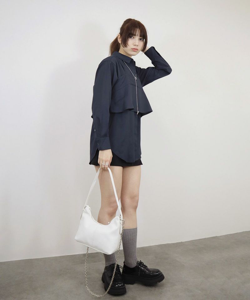 ミニ丈ボトムスと合わせて海外風のミニマルコーデや、