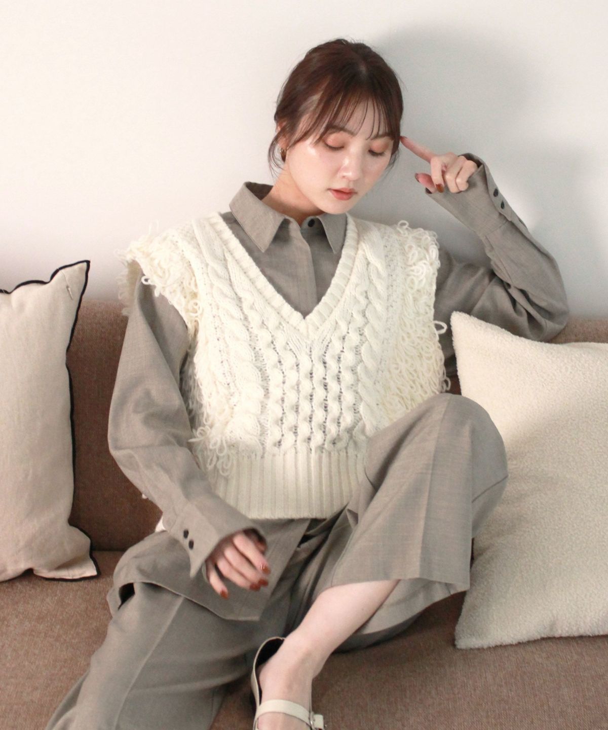 他の画像を見る 【SALE】 Vneck loop yarn knit vest 定価 ¥ 7,150 のところ ¥ 6,160 税込 販売期間 2025/11/10 12:00 〜 カートに入れる お気に入りに登録する