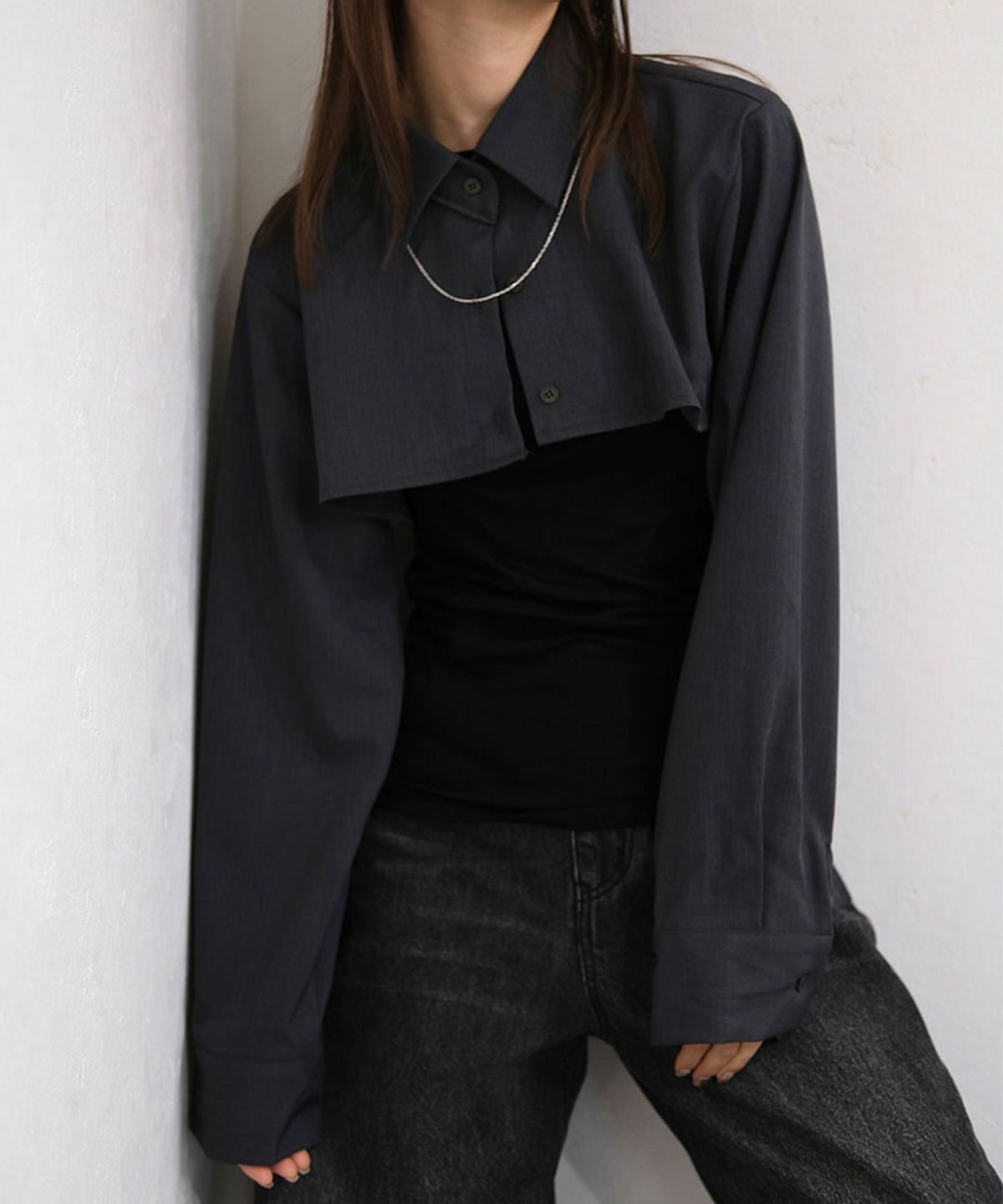 他の画像を見る 【SALE】 cropped regular collar shirt 定価 ¥ 12,100 のところ ¥ 9,900 税込 販売期間 2025/09/02 12:00 〜 カートに入れる お気に入りに登録する