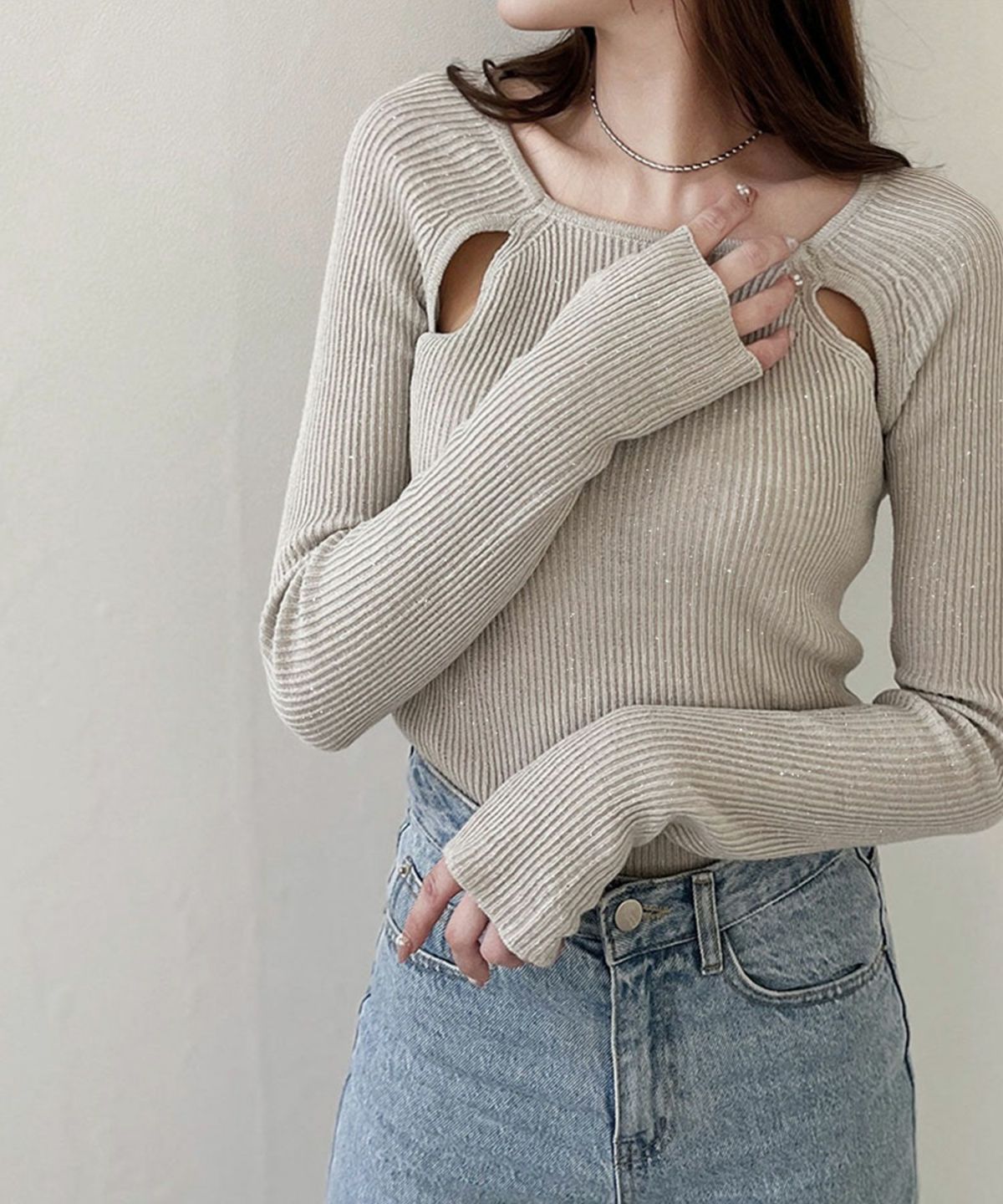 他の画像を見る 【SALE】 slit shoulder lame knit HIT ITEM 定価 ¥ 6,050 のところ ¥ 4,950 税込 販売期間 2025/11/10 12:00 〜 カートに入れる お気に入りに登録する