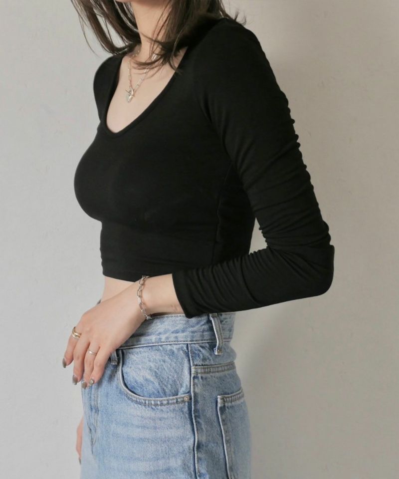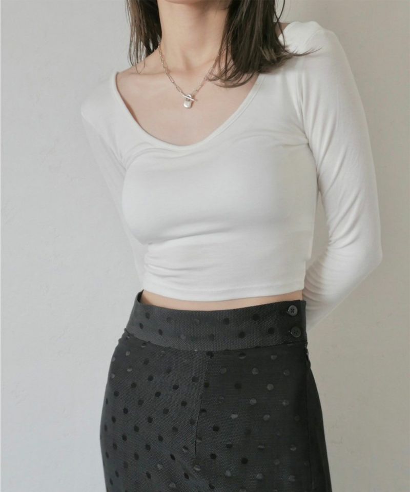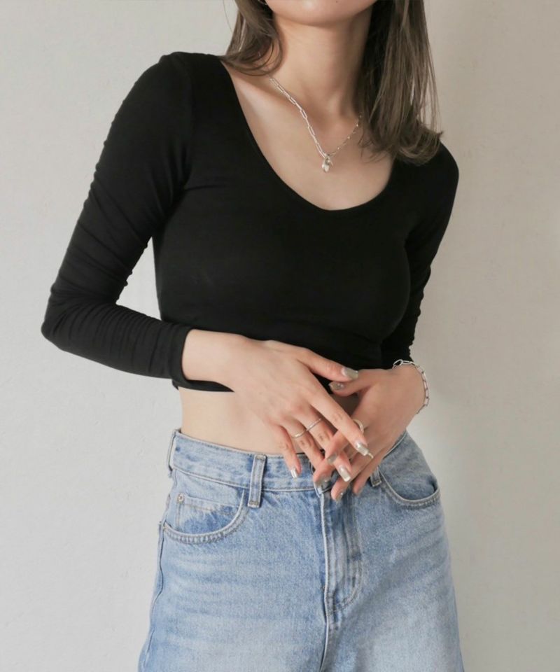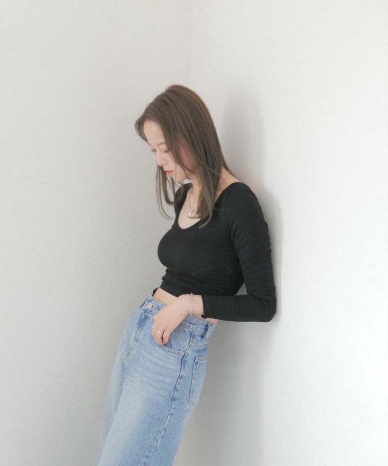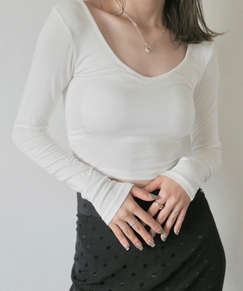 シンプルながらも大きく開いた襟元が ヘルシーな抜け感を演出してくれるクロップドトップス。 シンプルなカップインクロップドトップ。 カップ下はしっかりゴムが入っておりフィット感のある安心トップ。 大き目に空いた襟元はデコルテをきれいに見せてくれヘルシーな抜け感を演出してくれます。 トレンドライクなクロップド丈なのでベーシックなデニムなどのボトムスと合わせても 旬なスタイリングに仕上がります。 首元にチョーカーなどを巻いた旬なアレンジもおすすめ。 1枚でさらっと着れるラクさもありながら、ヘルシーで旬なスタイリングに仕上がるトップスです。 SOLD OUTの場合もぜひ「入荷お知らせメール」をご利用ください。 再販売の際にメールでご連絡させていただきます。 ※商品によっては再入荷しない場合もございます。