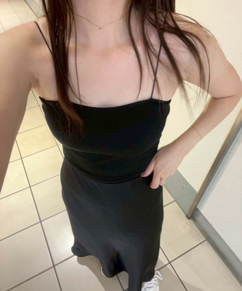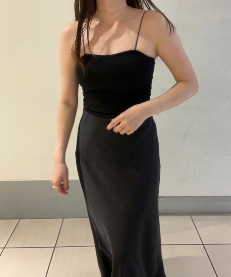 細めのストラップがあるだけで安心感抜群!オフショルやシアートップスのインナーで活躍します<