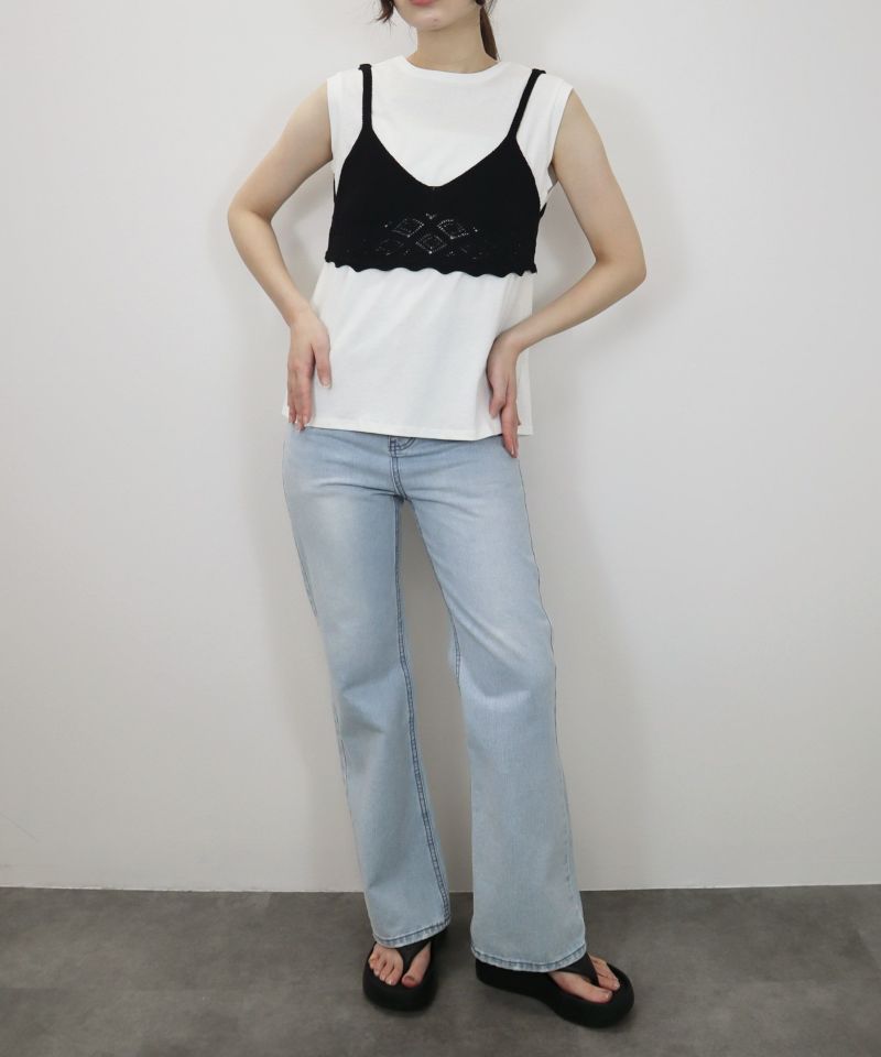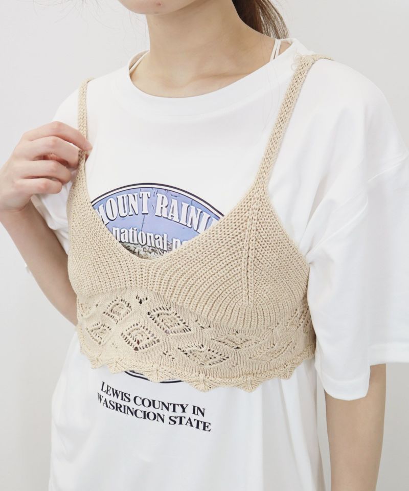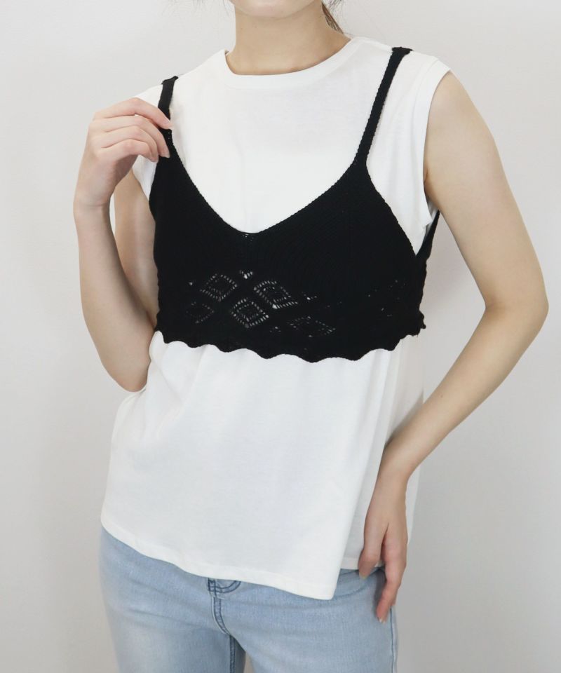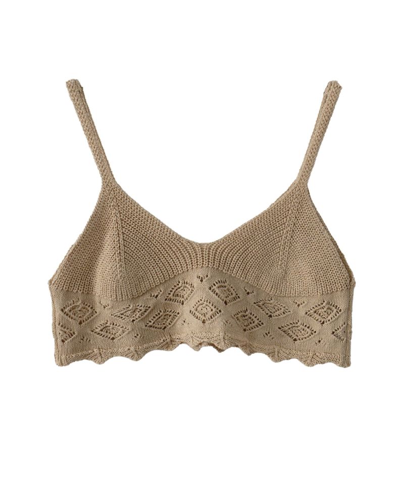 ナチュラルな雰囲気が叶う、クロシェ編みのキャミビスチェ。