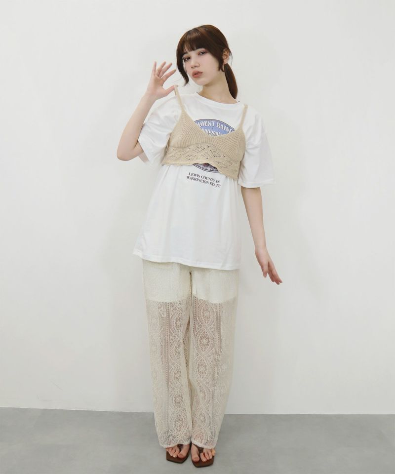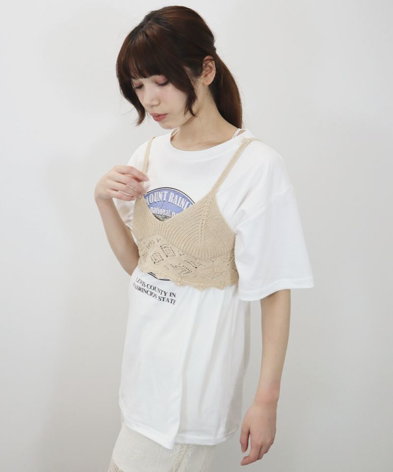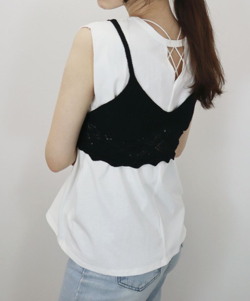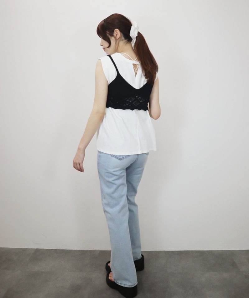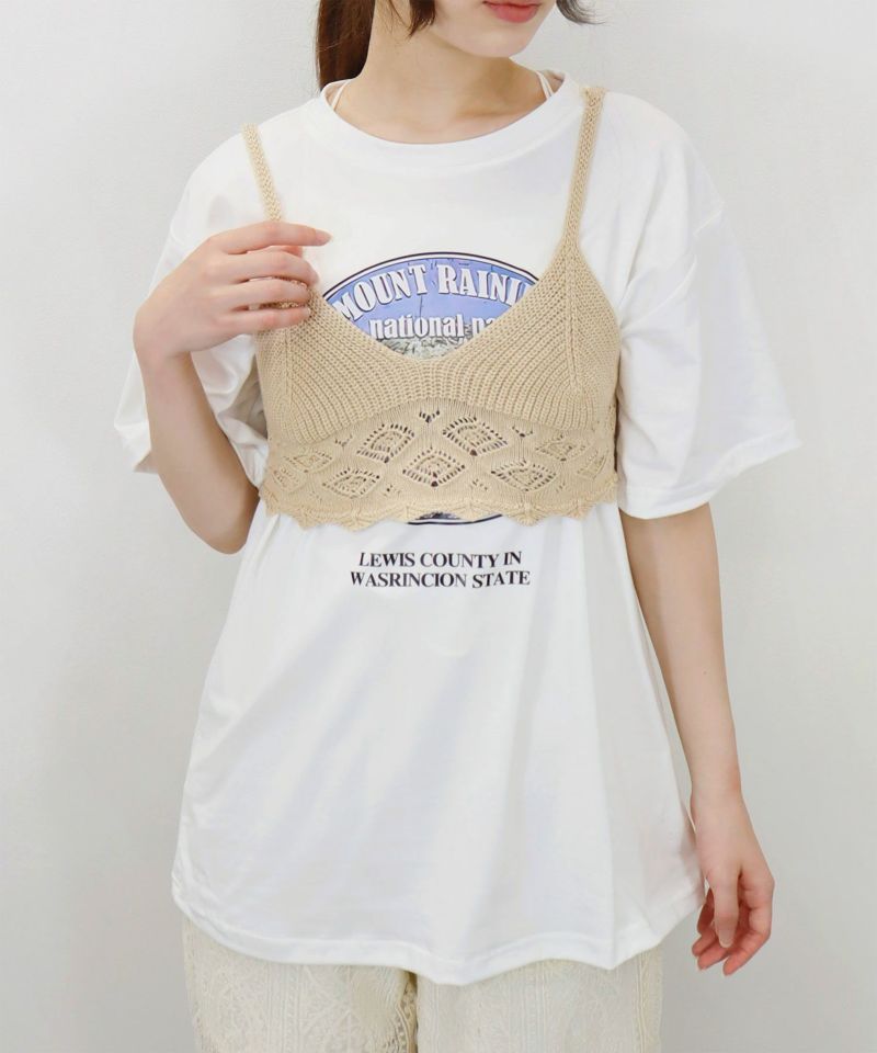 ナチュラルな雰囲気が叶う、クロシェ編みのキャミビスチェ。