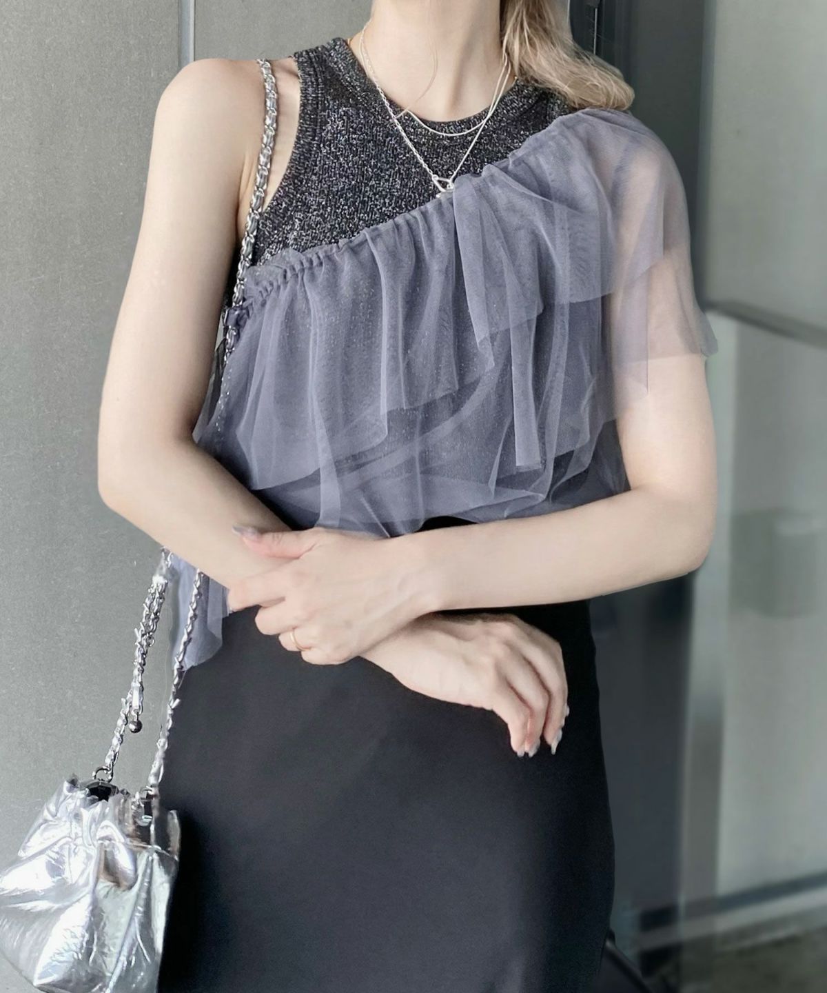 他の画像を見る 【SALE】 tulle oneshoulder bustier 定価 ¥ 5,500 のところ ¥ 2,200 税込 販売期間 2025/09/02 12:00 〜 カートに入れる お気に入りに登録する
