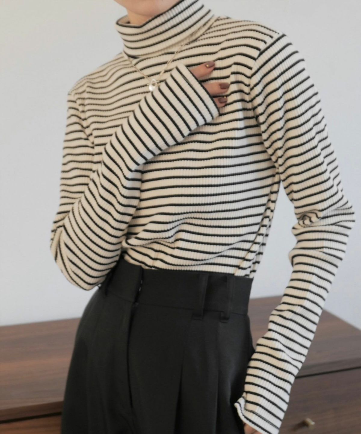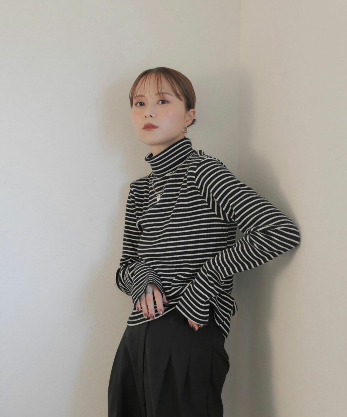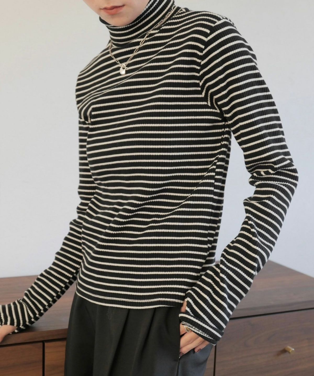 他の画像を見る 【SALE】 border turtle neck rib top 定価 ¥ 9,900 のところ ¥ 8,800 税込 会員特別価格 ¥ 8,250 税込 販売期間 2025/11/10 12:00 〜 在庫切れ カートに入れる お気に入りに登録する