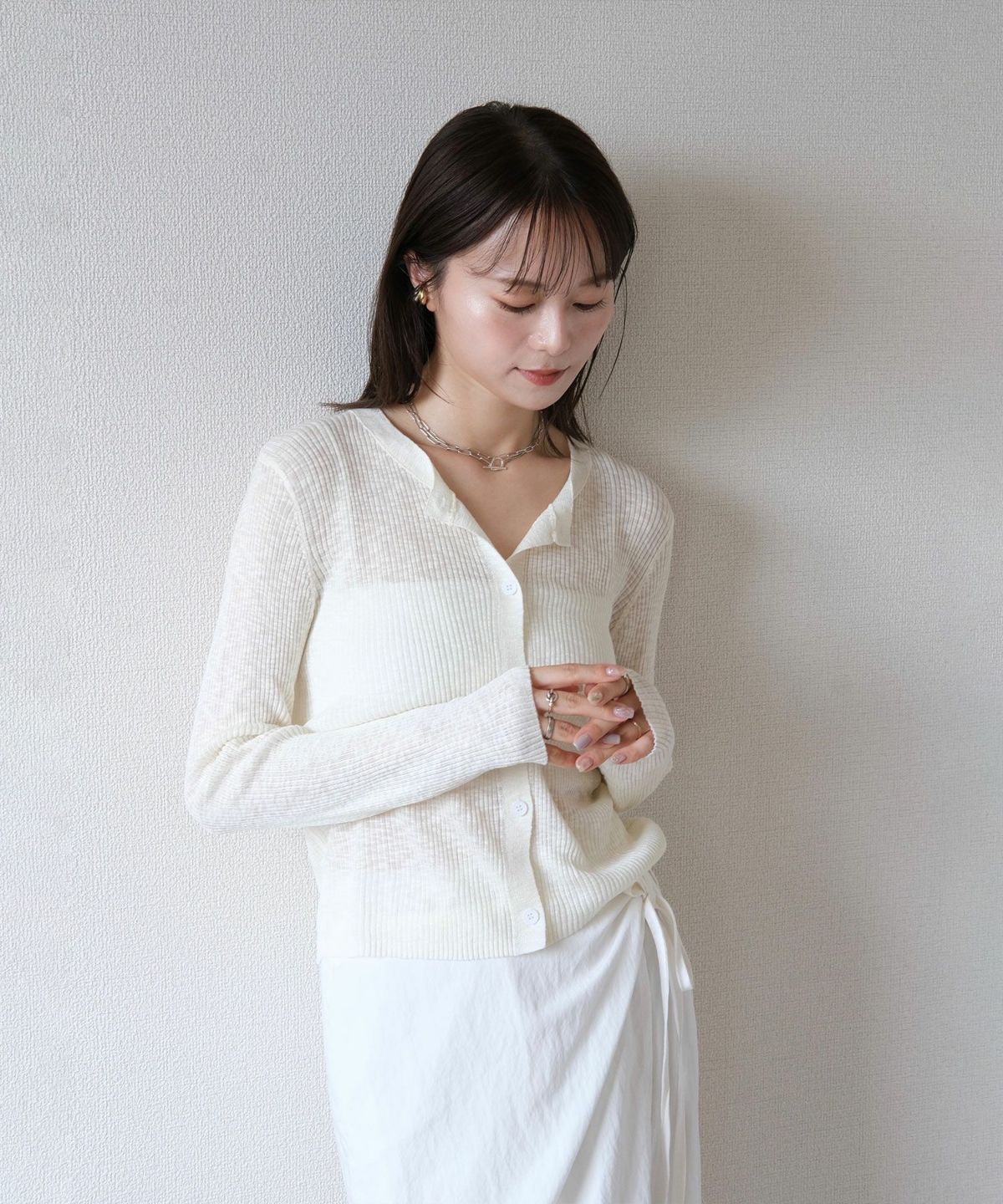 他の画像を見る crew neck sheer rib cardigan ¥ 8,800 税込 会員特別価格 ¥ 7,920 税込 販売期間 2025/11/10 12:00 〜 カートに入れる お気に入りに登録する