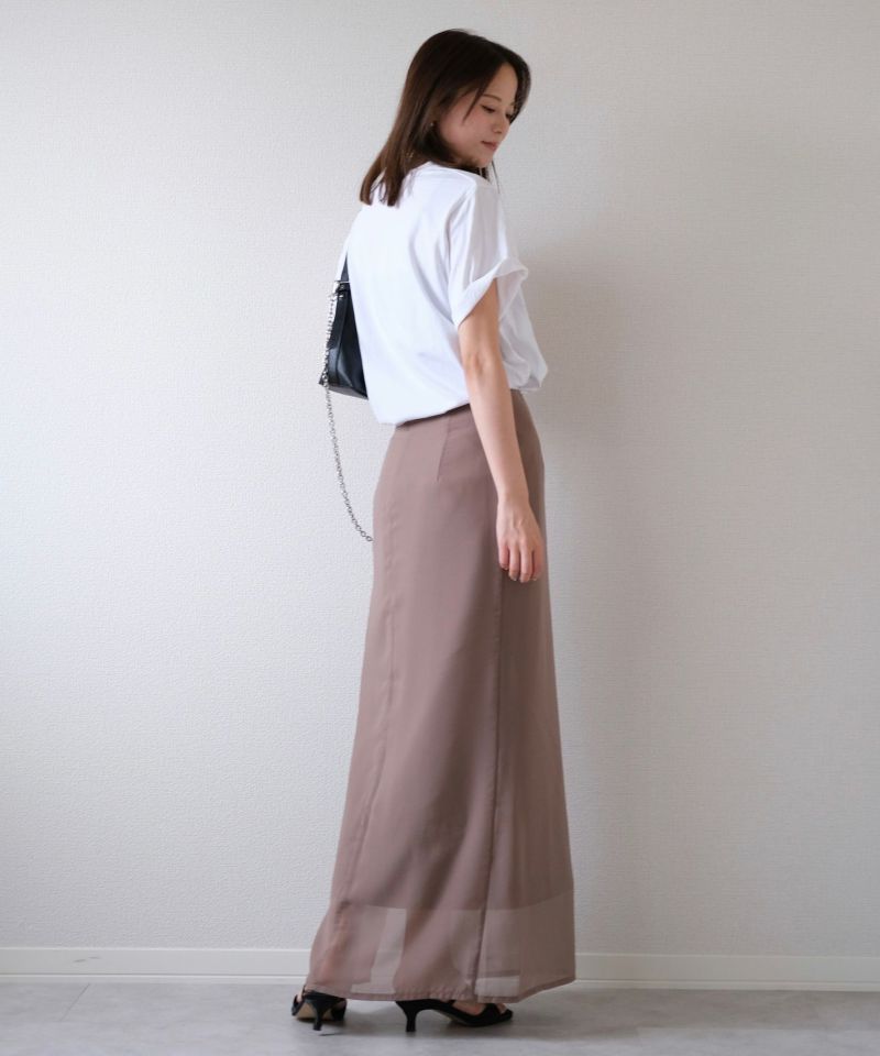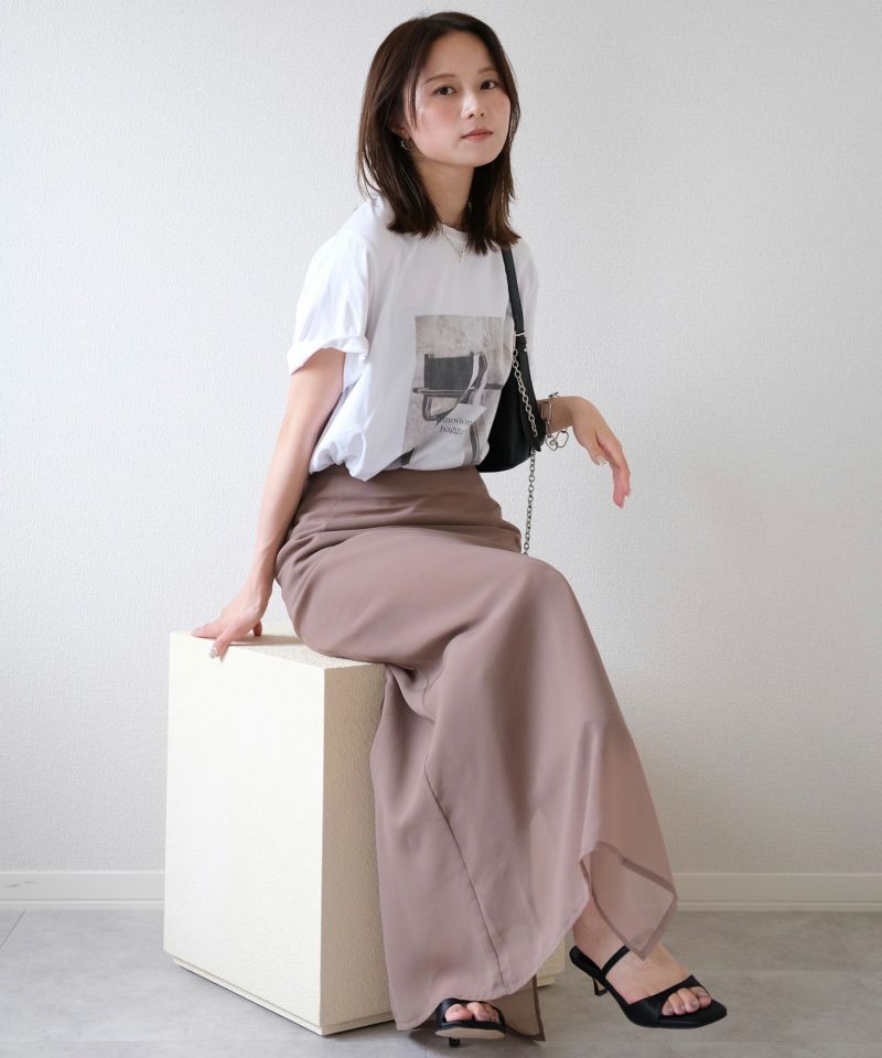 やわらかなシフォン素材とハリ感のある生地がレイヤードされたスカート。