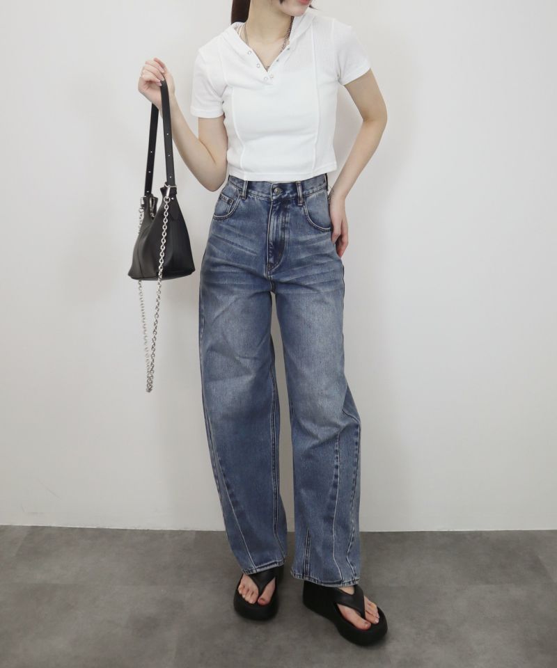 ワイドシルエットのボトムスを合わせると旬なコーデに。