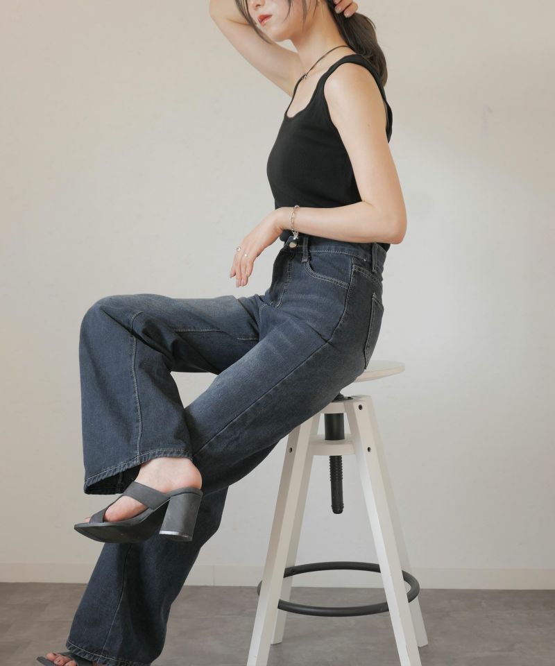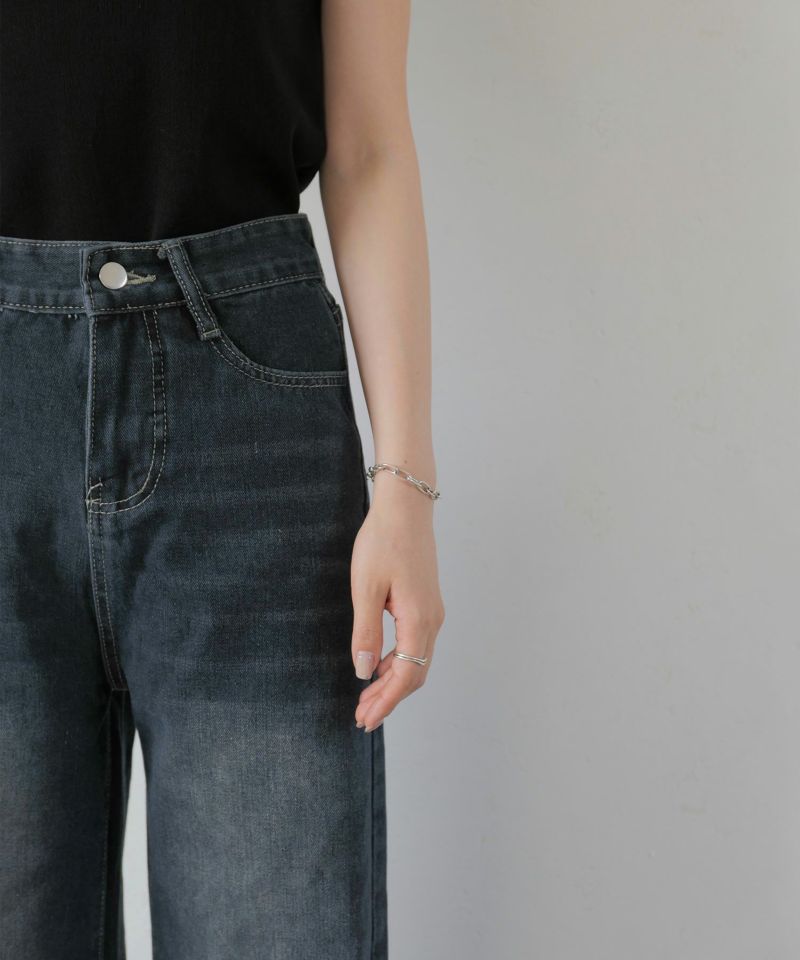 ゆとりのあるサイズ感がトレンドを抑えつつも ベーシックさを残したデザインで長く使えるデニム。 バイカラーステッチがワンポイント◎ ほんのりウォッシュ加工された生地はこなれ感を演出してくれます。