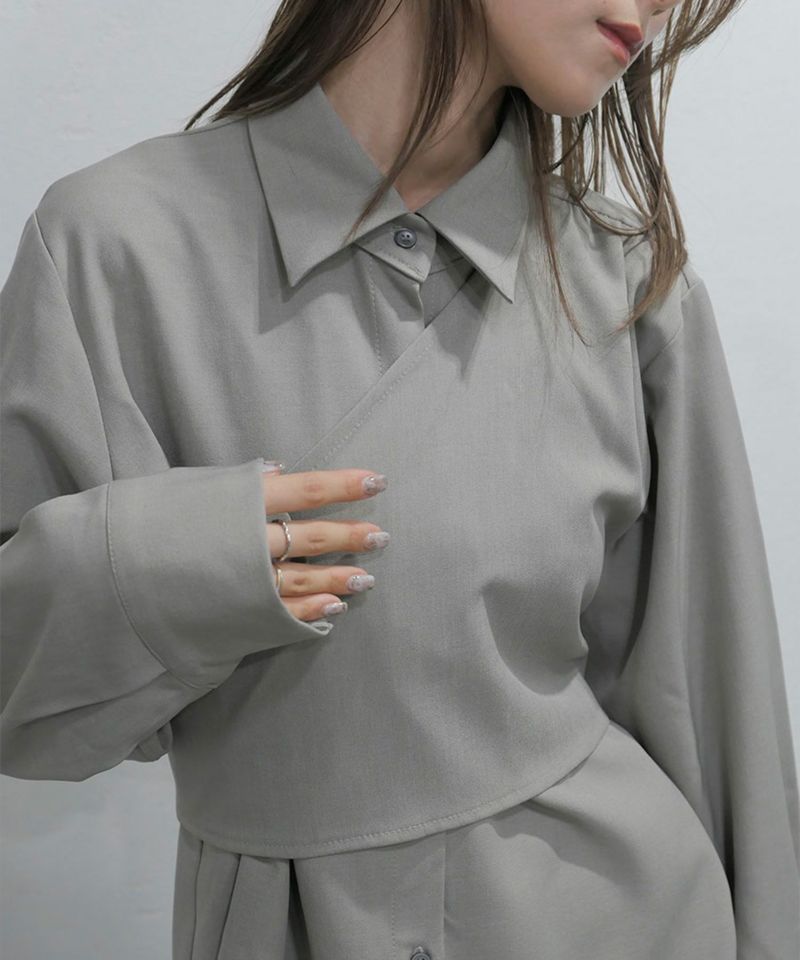 トレンド感のあるワンショル風のレイヤードデザインになったシャツは