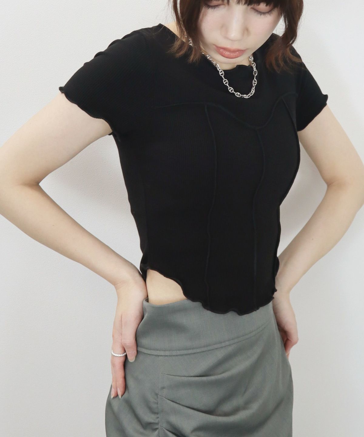 他の画像を見る 【SALE】 bicolor short top 定価 ¥ 5,720 のところ ¥ 4,400 税込 販売期間 2025/09/02 12:00 〜 カートに入れる お気に入りに登録する