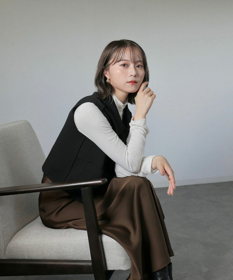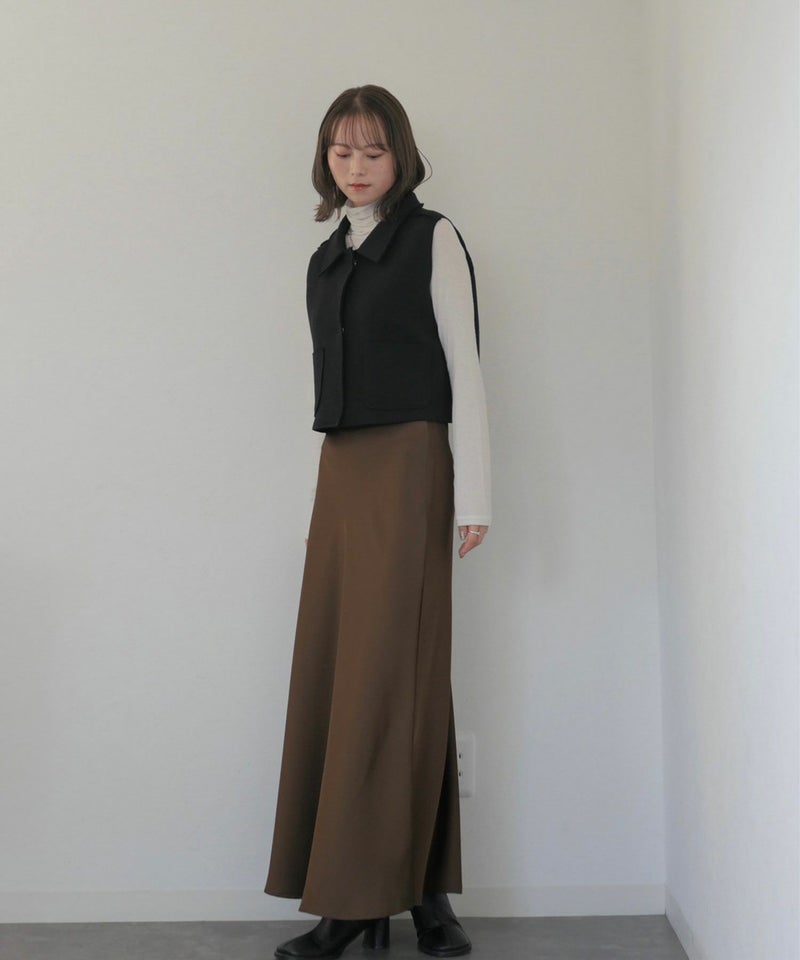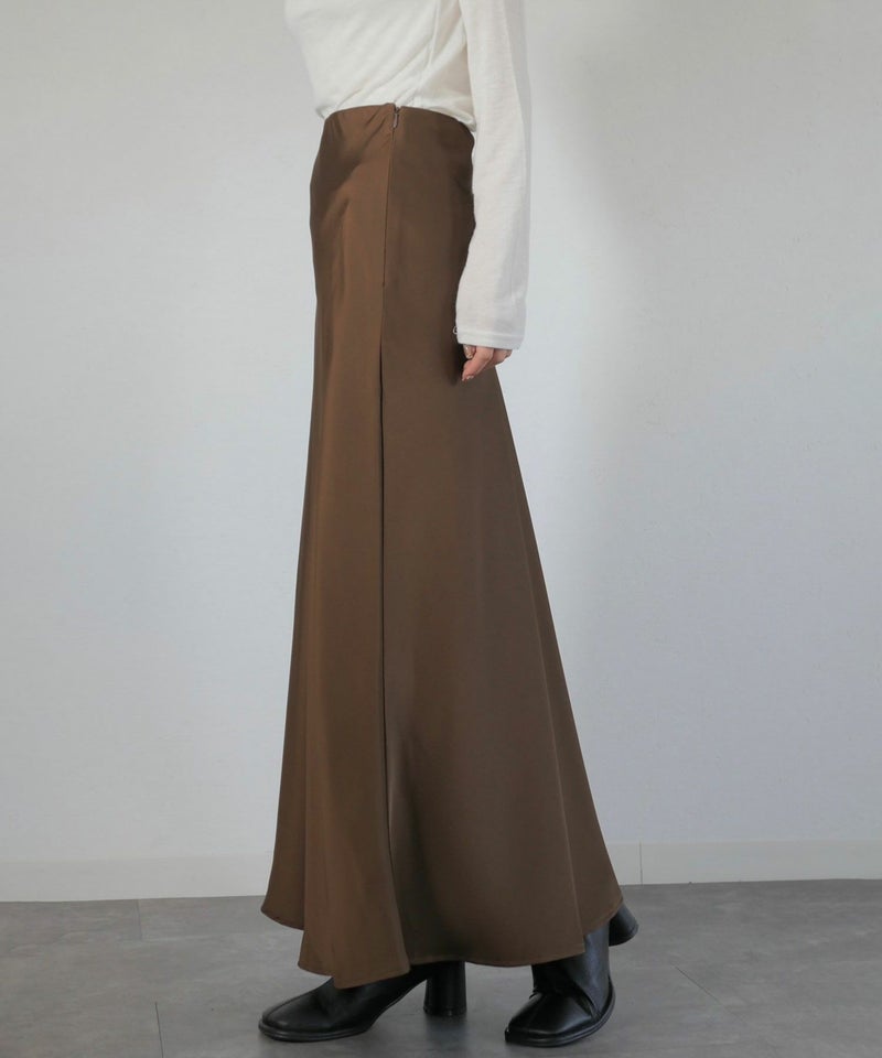 ゆるやかなマーメイドシルエットが体型を強調しすぎず