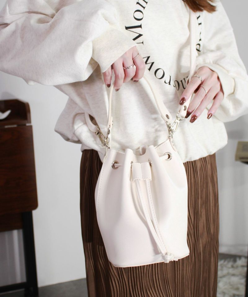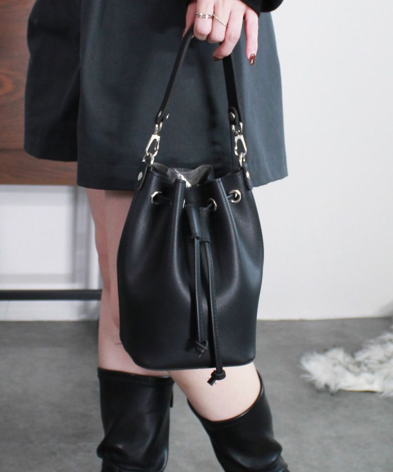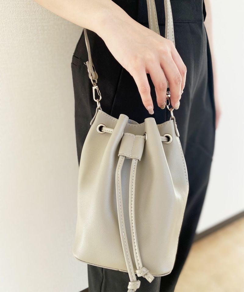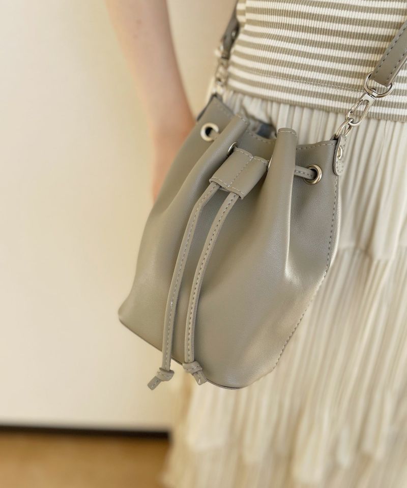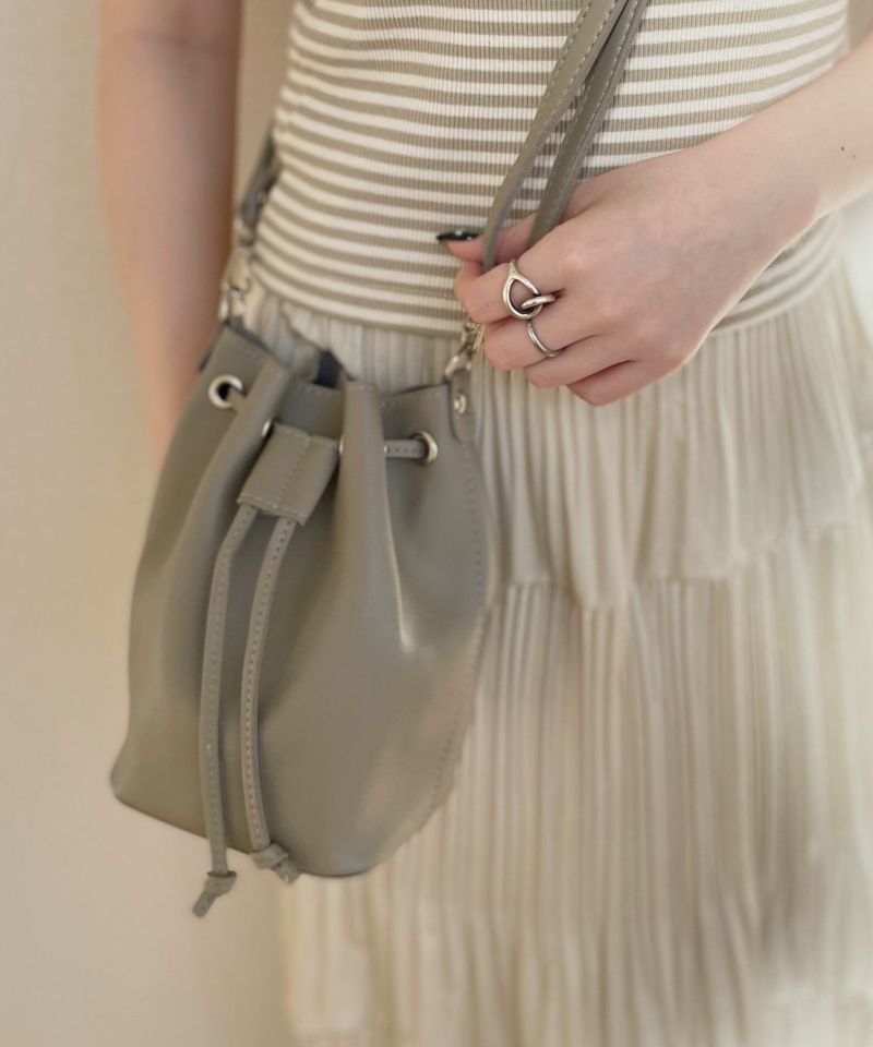 コロンとしたサイズ感がかわいい♡ 開閉しやすい巾着バッグ 使いやすい定番のブラックとブラウンに、 グレイッシュなカーキをプラスしたカラーバリエーション。