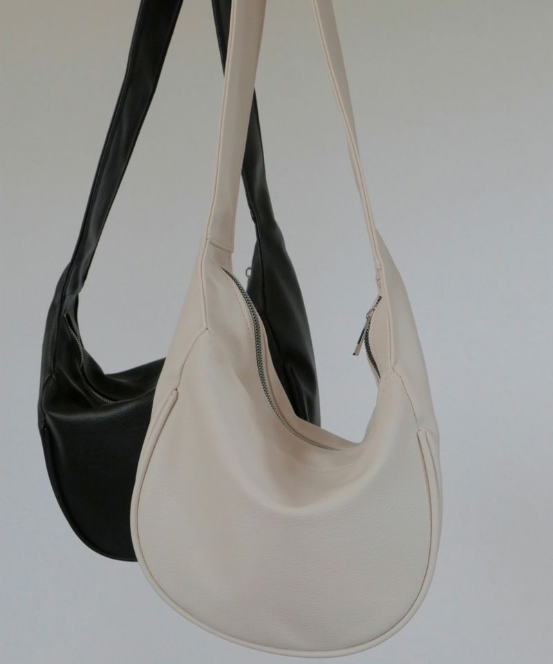 大人気のハーフムーンバッグに ふんわり肌触りのよい柔らかな合成皮革で仕上げたアイテムが新登場♡ 内側にポケットが3つ付いていて荷物の整理整頓に役立ちます。 ファスナー付きの内ポケットも付いているので、 鍵や無くしやすい小物などいれても安心です◎