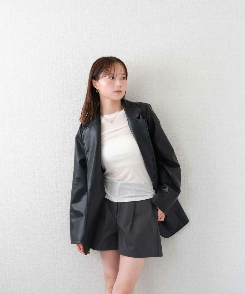 シャツやジャケットを合わせればセットアップ風のきれいめスタイルに。