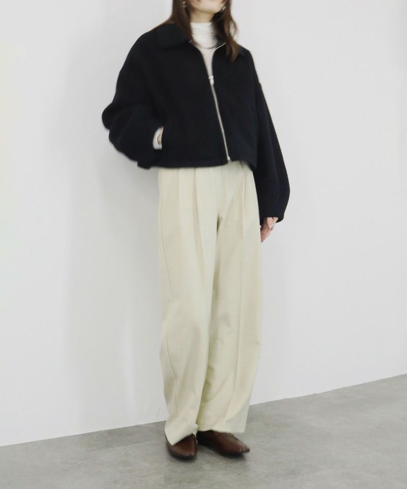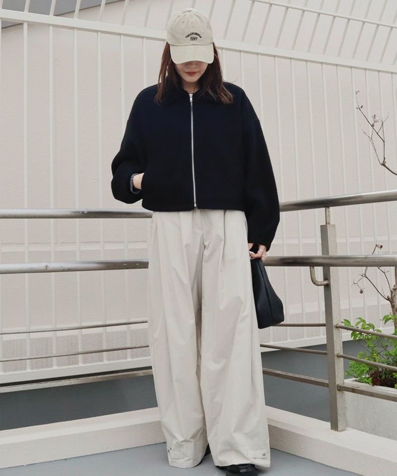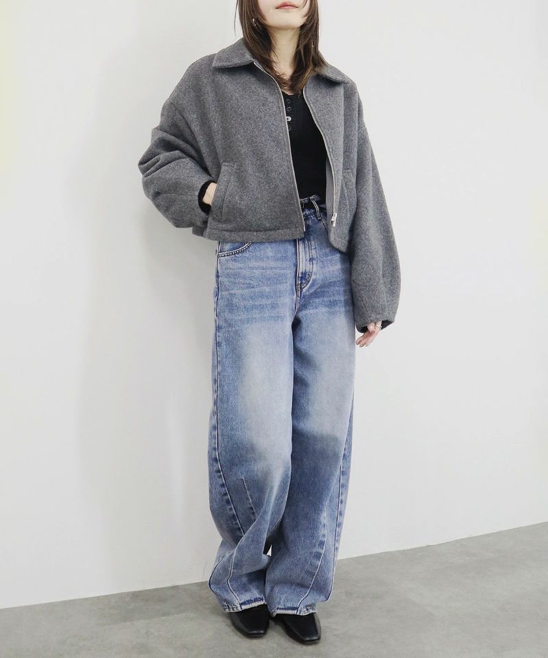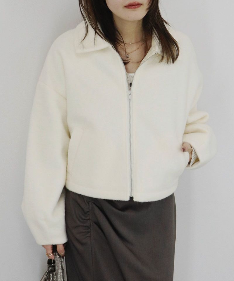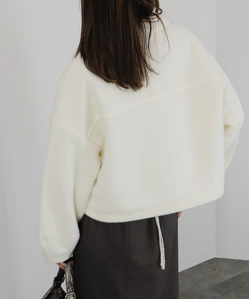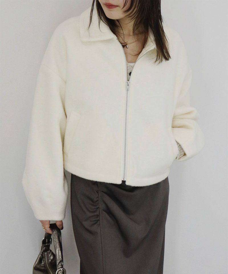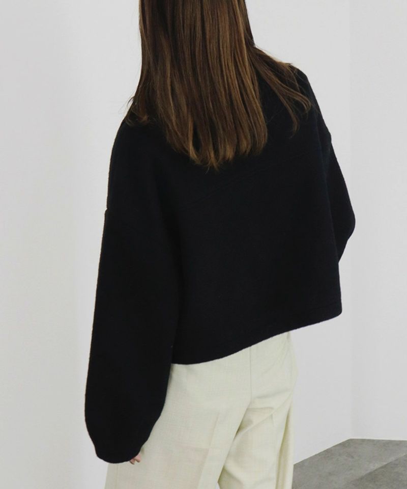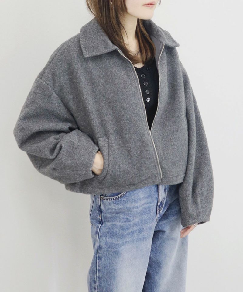 シンプルで使いやすいカジュアルさと、 トレンドライクなクロップド丈デザインが魅力的な1枚。 軽やかで柔らかい生地と、たぽんとしたボリューム袖が シンプルで着まわしやすい万能アウター。
