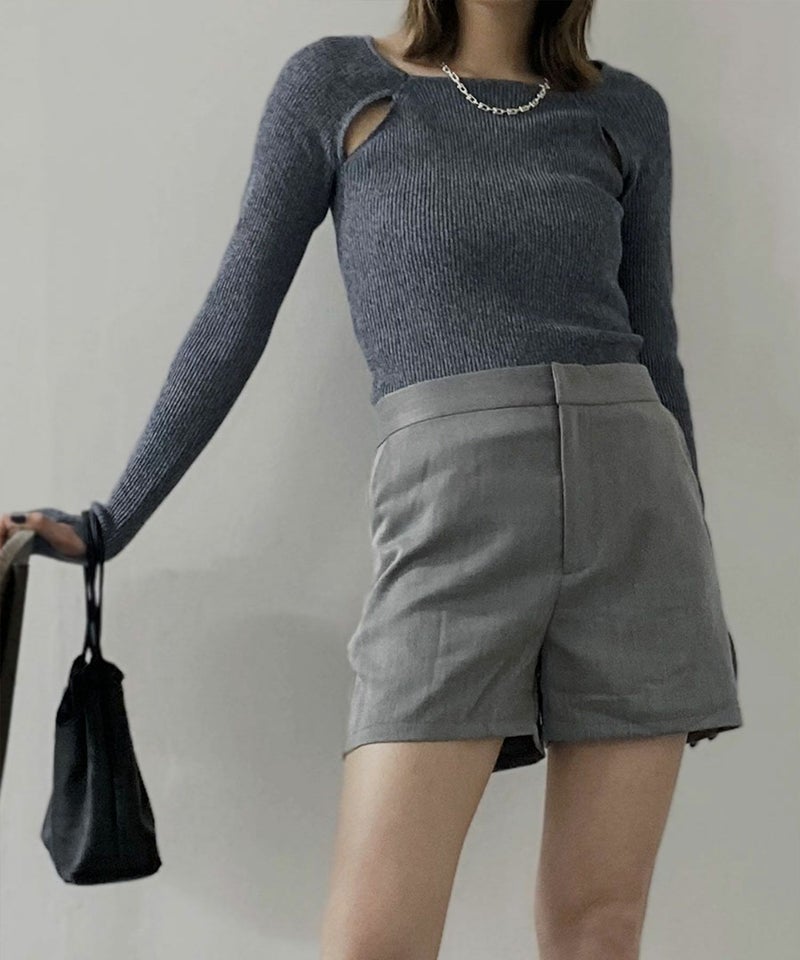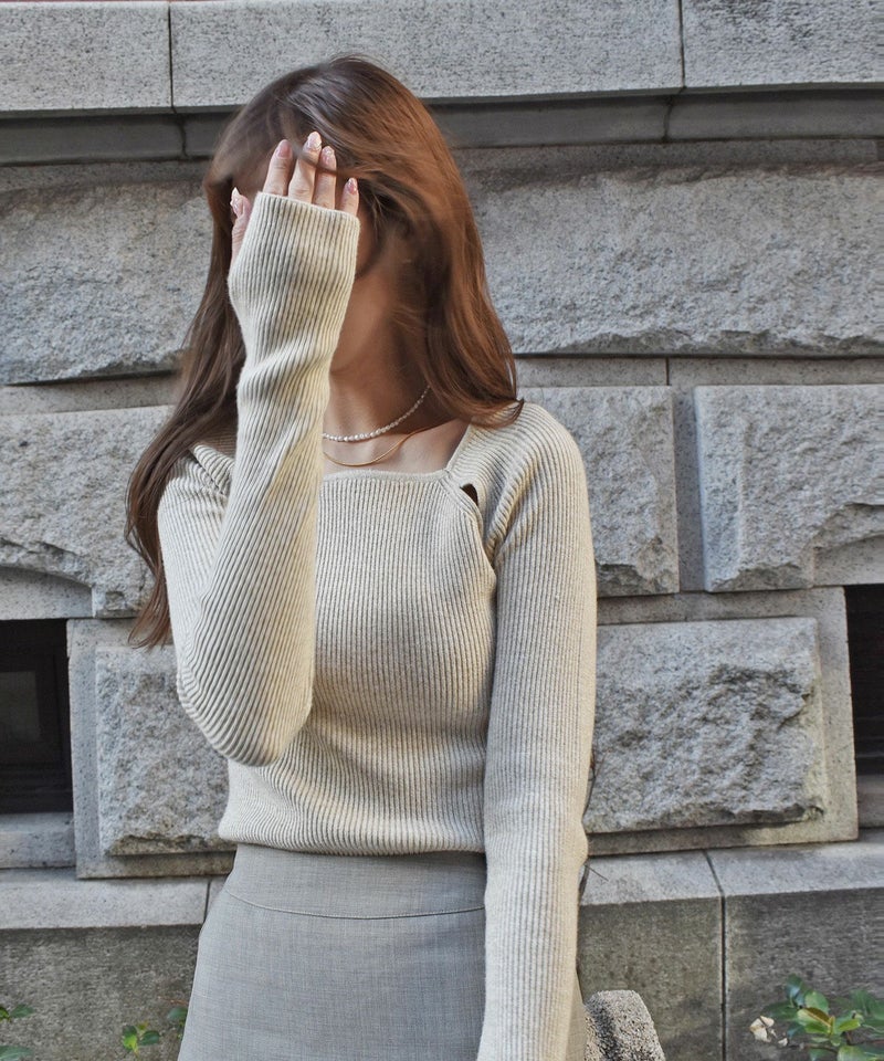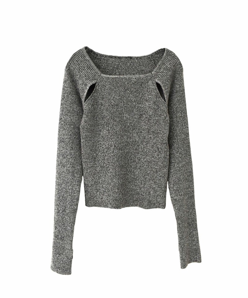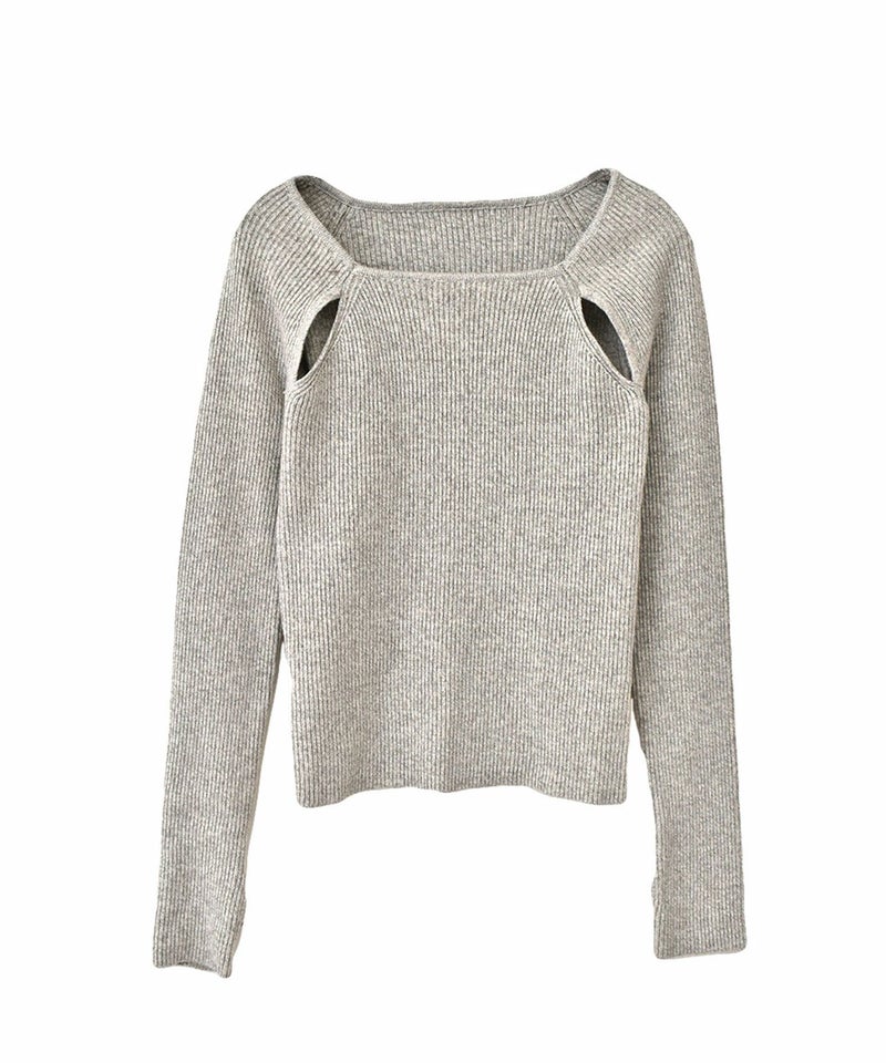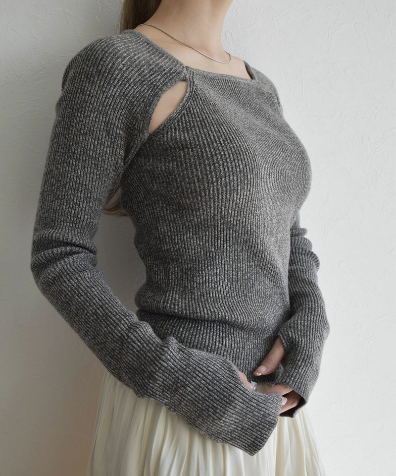 ちらっと肌がのぞくトレンドの カットオフデザインがアクセントのニット。 ヘルシーな肌見せがかないます♡