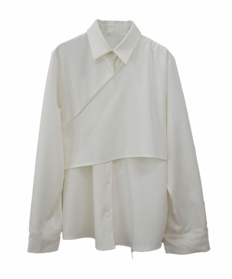 トレンド感のあるワンショル風のレイヤードデザインになったシャツは