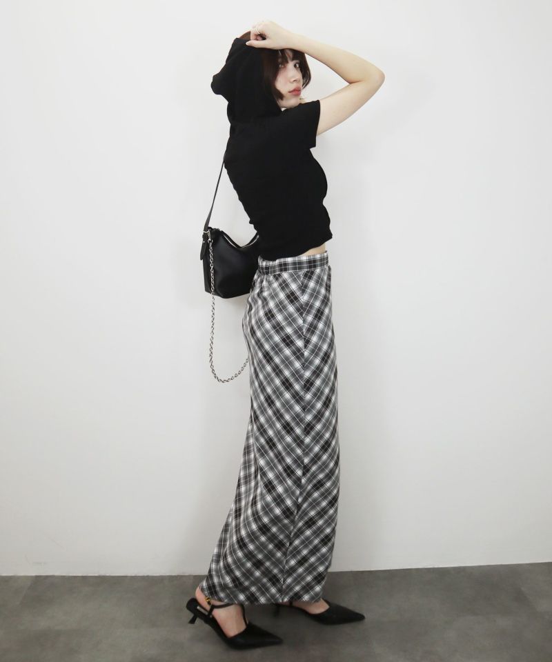 ワイドシルエットのボトムスを合わせると旬なコーデに。