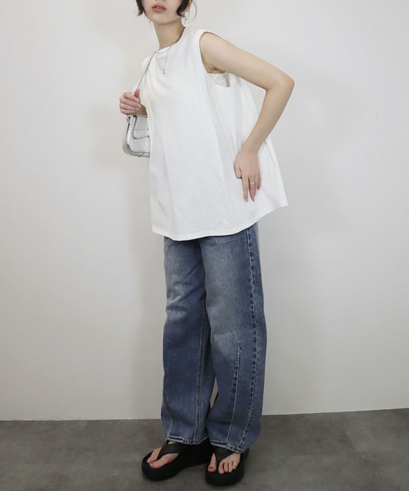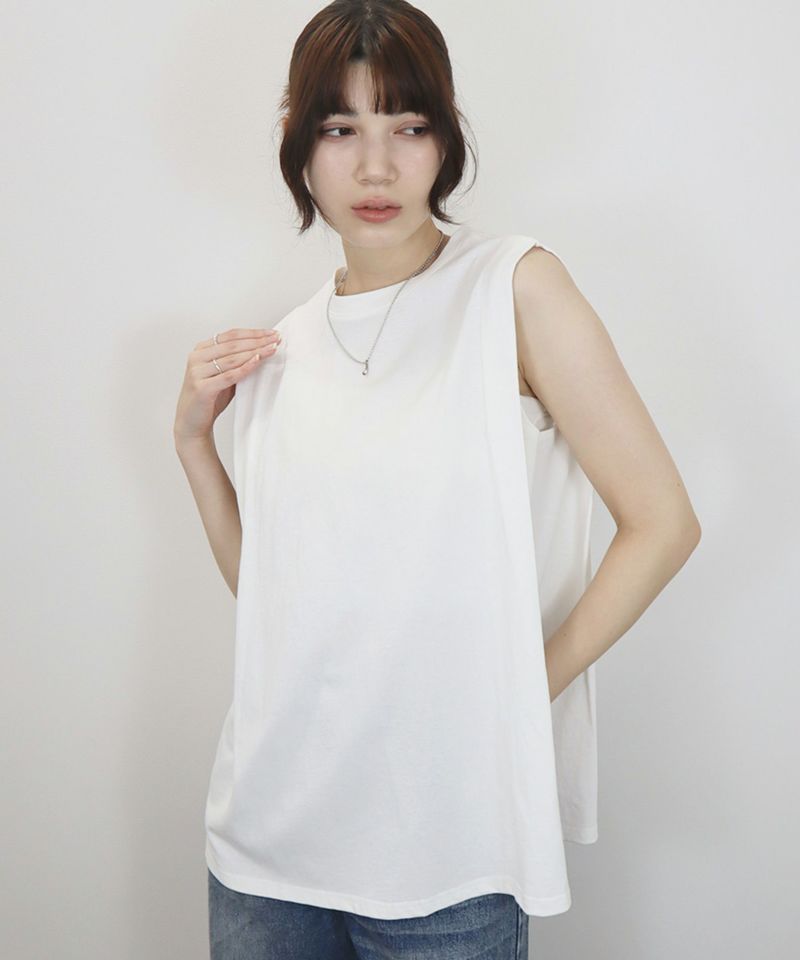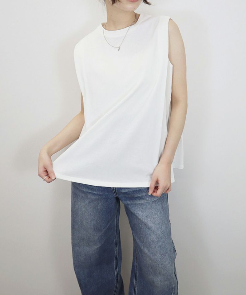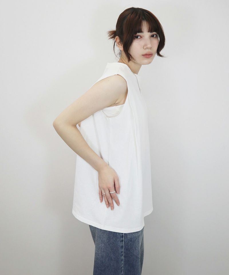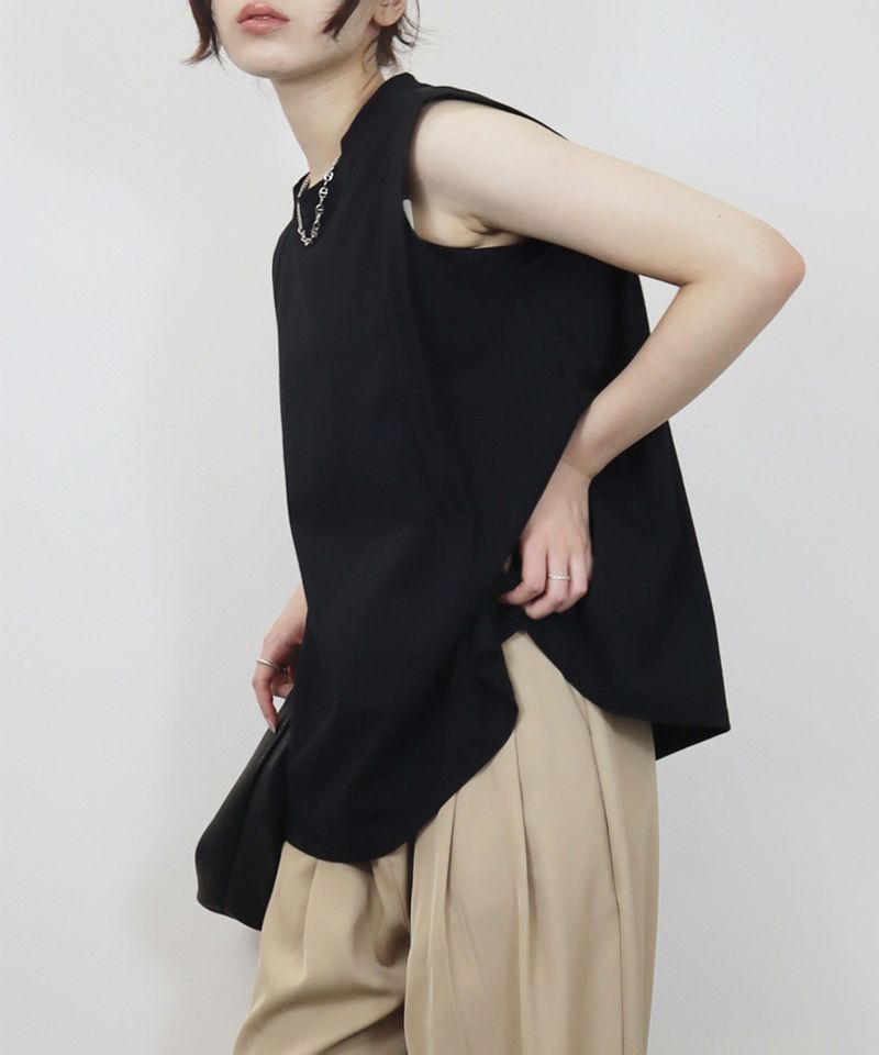 シンプルながらも肩のタックがポイントになった 春夏に大活躍するノースリーブトップス。 立体感のあるショルダーラインが華やかさをプラス✓ 程よくゆとりのあるシルエットで、 1枚でもインナーとしても着まわしやすい万能アイテムです。