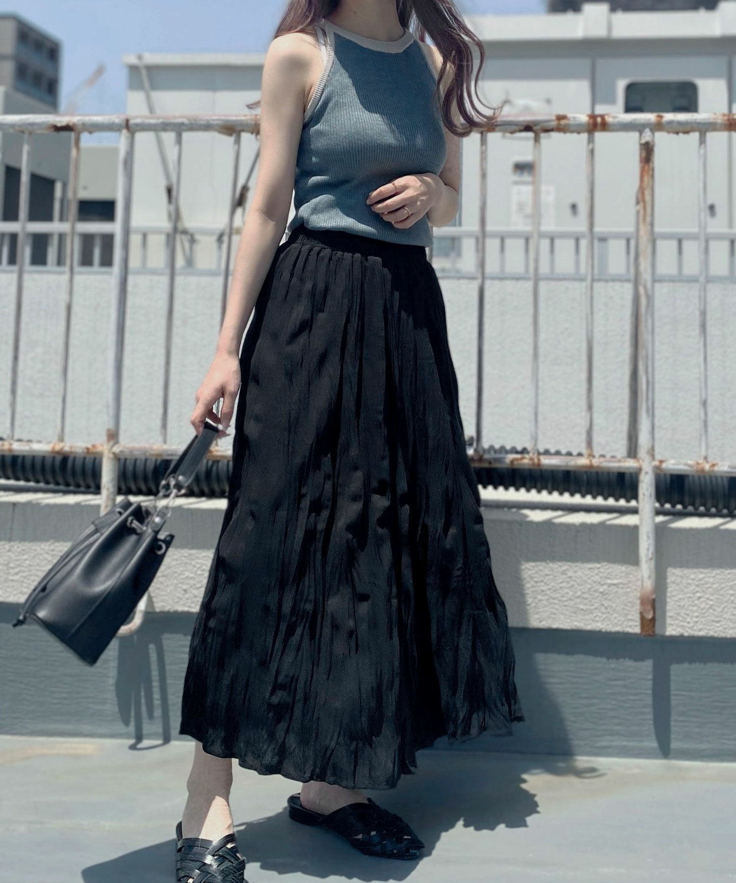 暖かな季節にぴったりの 軽やか素材のワッシャープリーツスカート♡ 歩く度に揺れるシフォン素材が 女性らしさを際立ててくれます。 ウエストゴムで着心地抜群♪